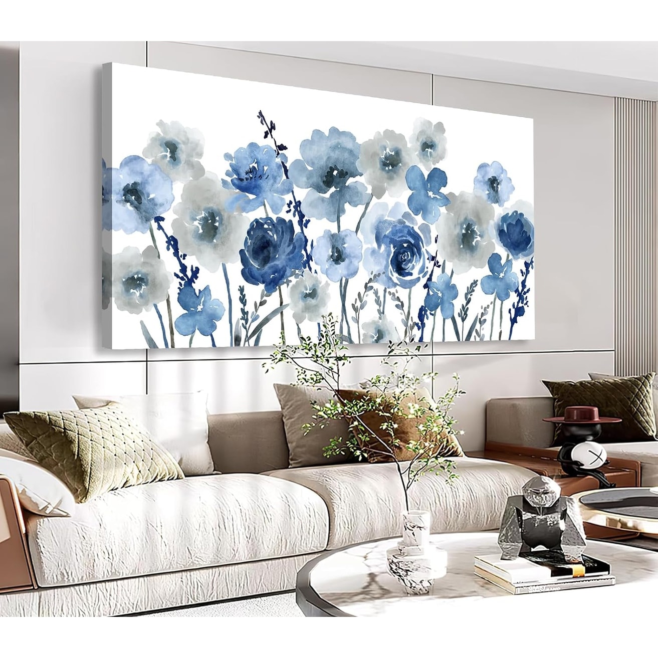 Flowers Canvas Wall Art Indigo Floral Canvas Pictures