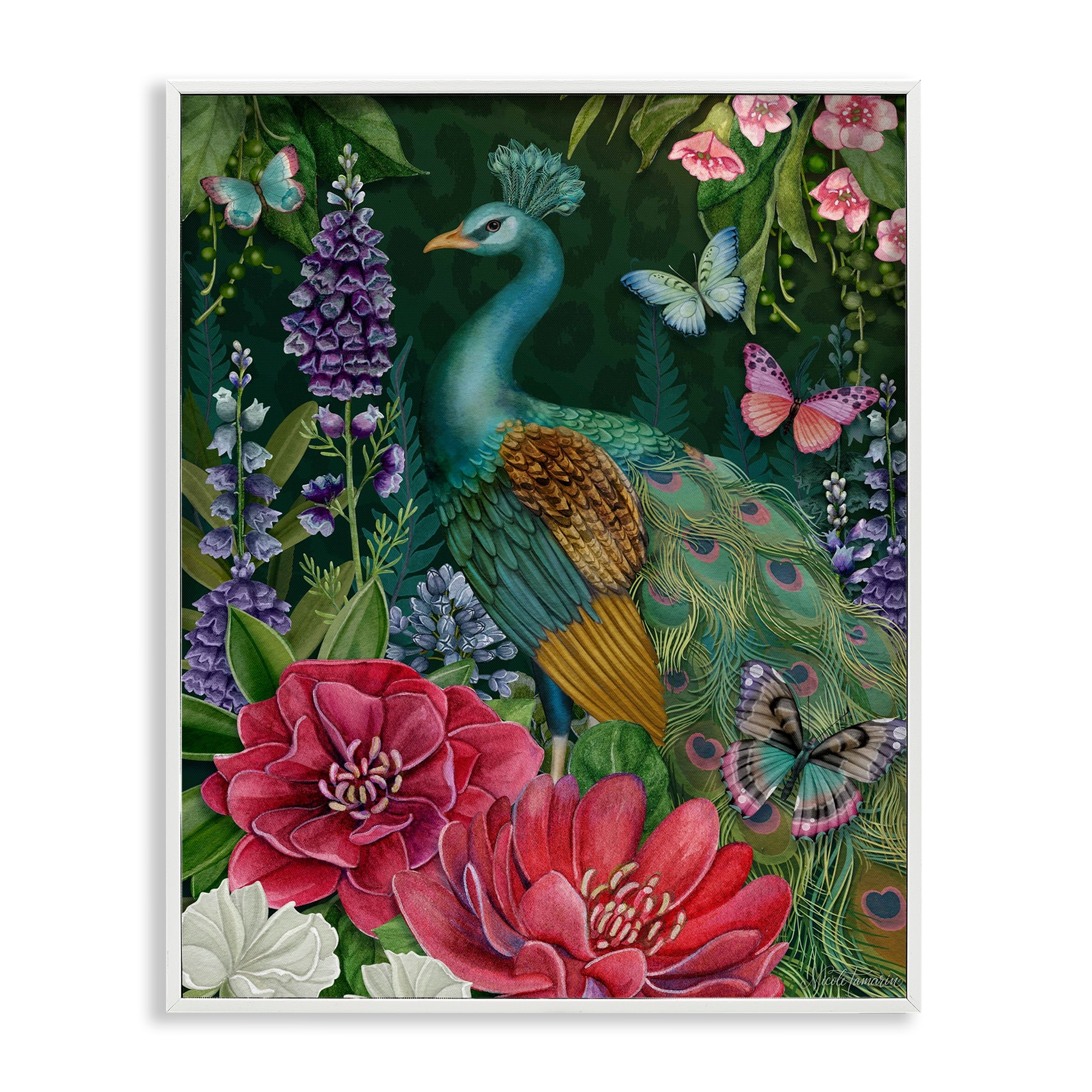 Stupell Garden Motif Peacock Framed Giclee Art Design By Nicole Tamarin