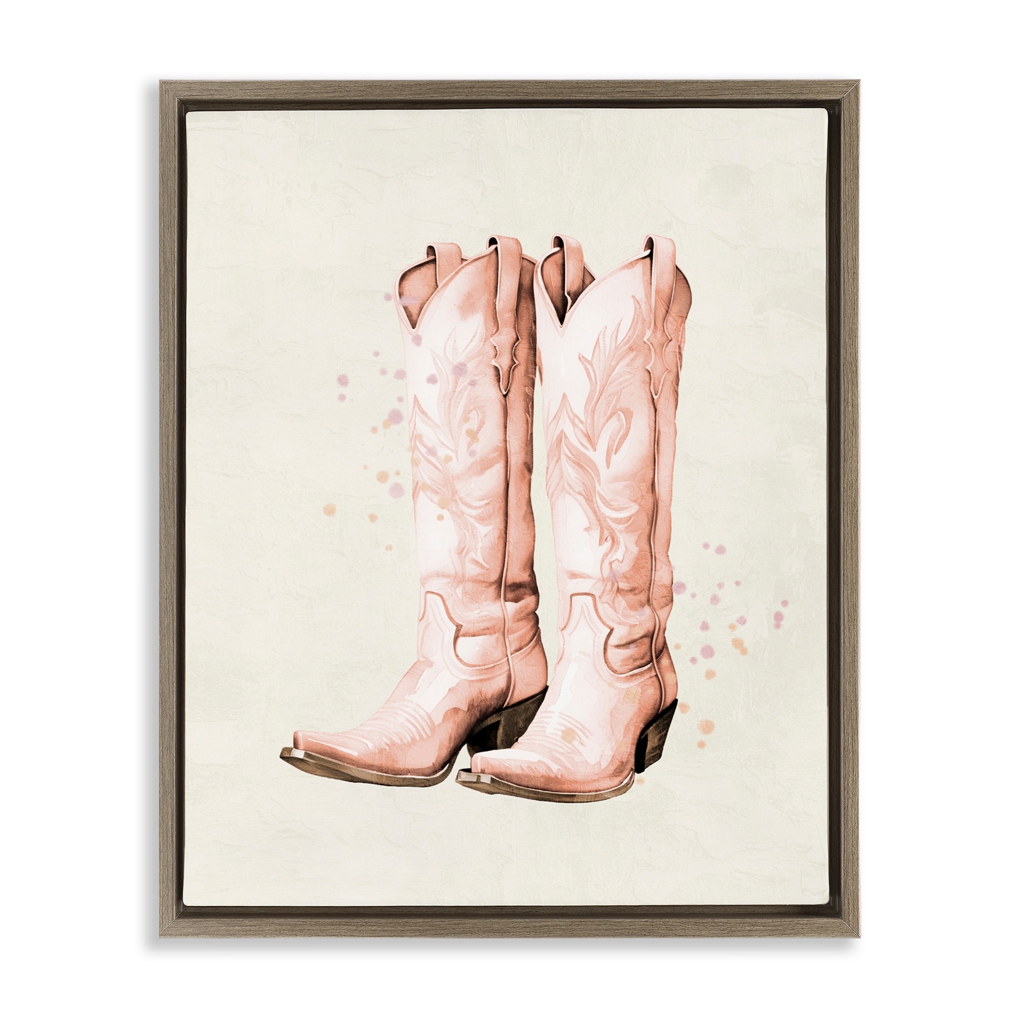 Stupell Howdy Cowgirl Pastel Boots Framed Floater Canvas Wall Art Design By Kim Allen