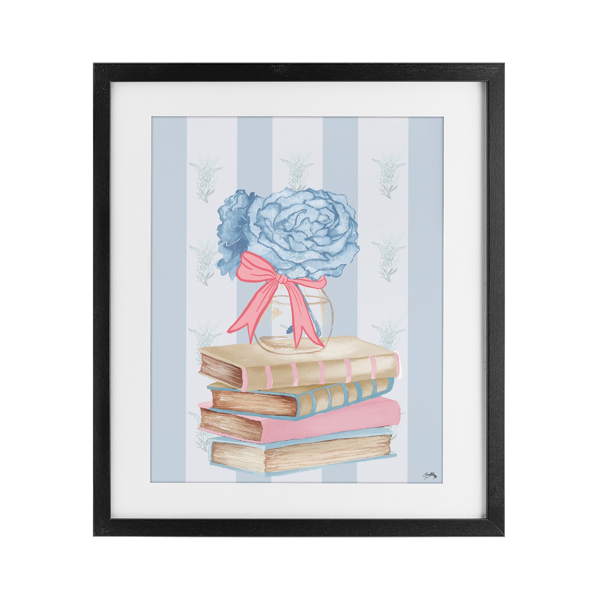 Stupell Stacked Books & Blue Hydrangeas Under Glass Framed Design By Elizabeth Medley