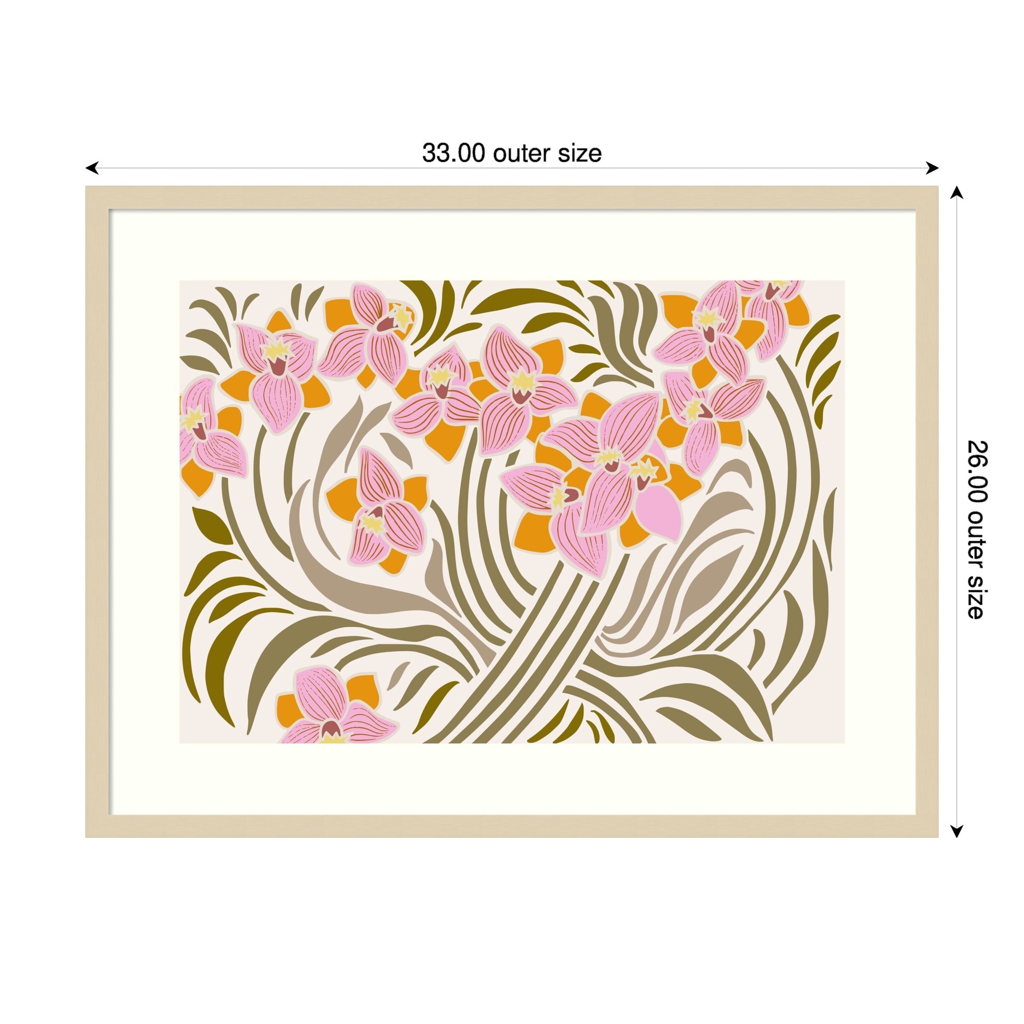 Orange and Pink Floral Pattern by Annick Wood Framed Wall Art Print