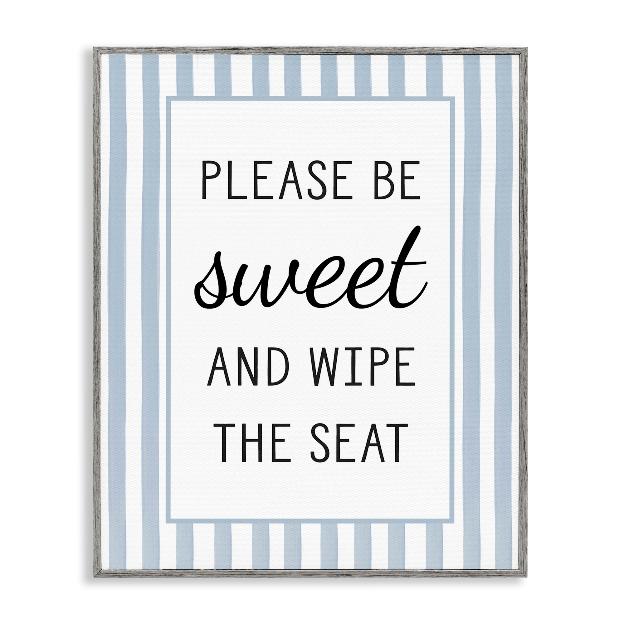 Stupell Be Sweet & Wipe Seat Framed Giclee Art Design By Lettered and Lined