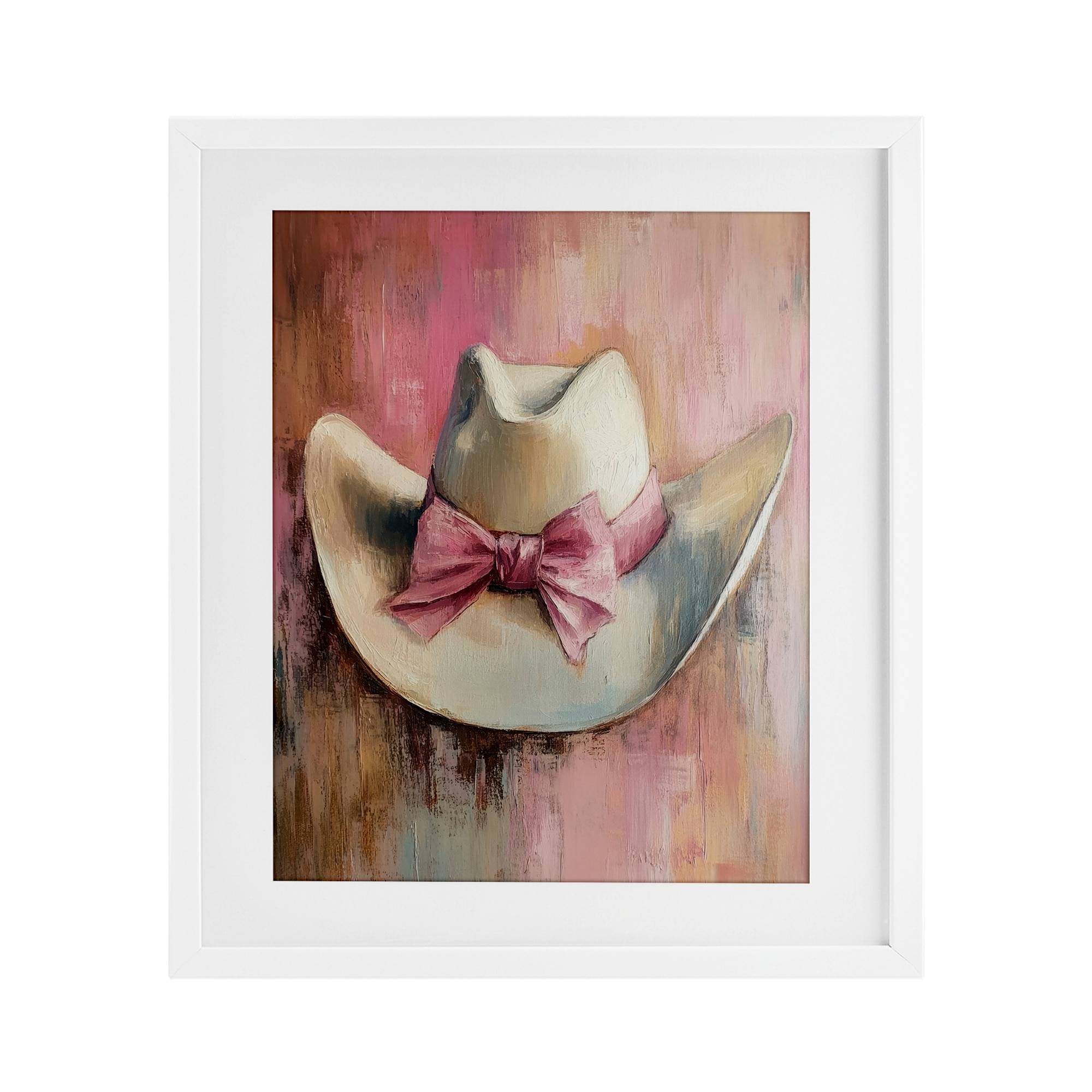 Stupell Cowgirl Hat with Bow over Pink Under Glass Framed Design By Petal Prints Design