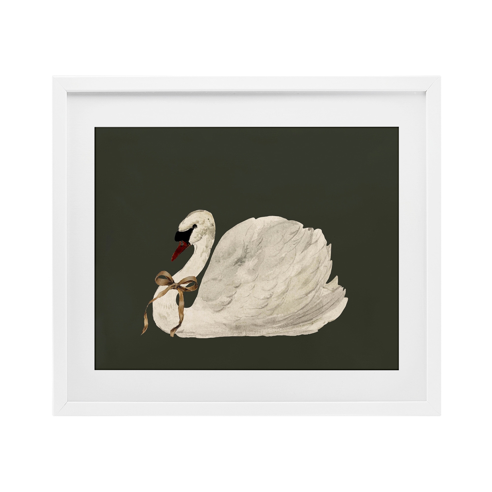 Stupell Holiday Swan with Ribbon Under Glass Framed Design By Lettered and Lined