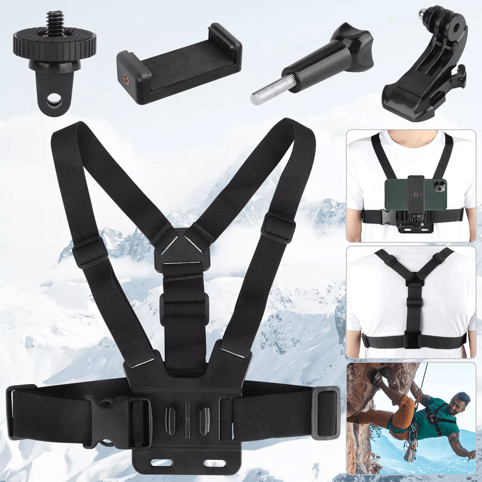 Adjustable Phone Holder Chest Strap Mount Accessories, Hands Free POV Harness Kit For VLOG, Cycling, Skiing Adjustable Phone Holder Chest Strap Mount Accessories, Hands Free POV Harness Kit For VLOG, Cycling, Skiing