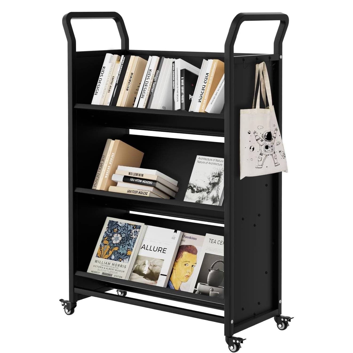 V-Shaped Metal Rolling Cart, 3-Tier Storage Bookshelf - N/A