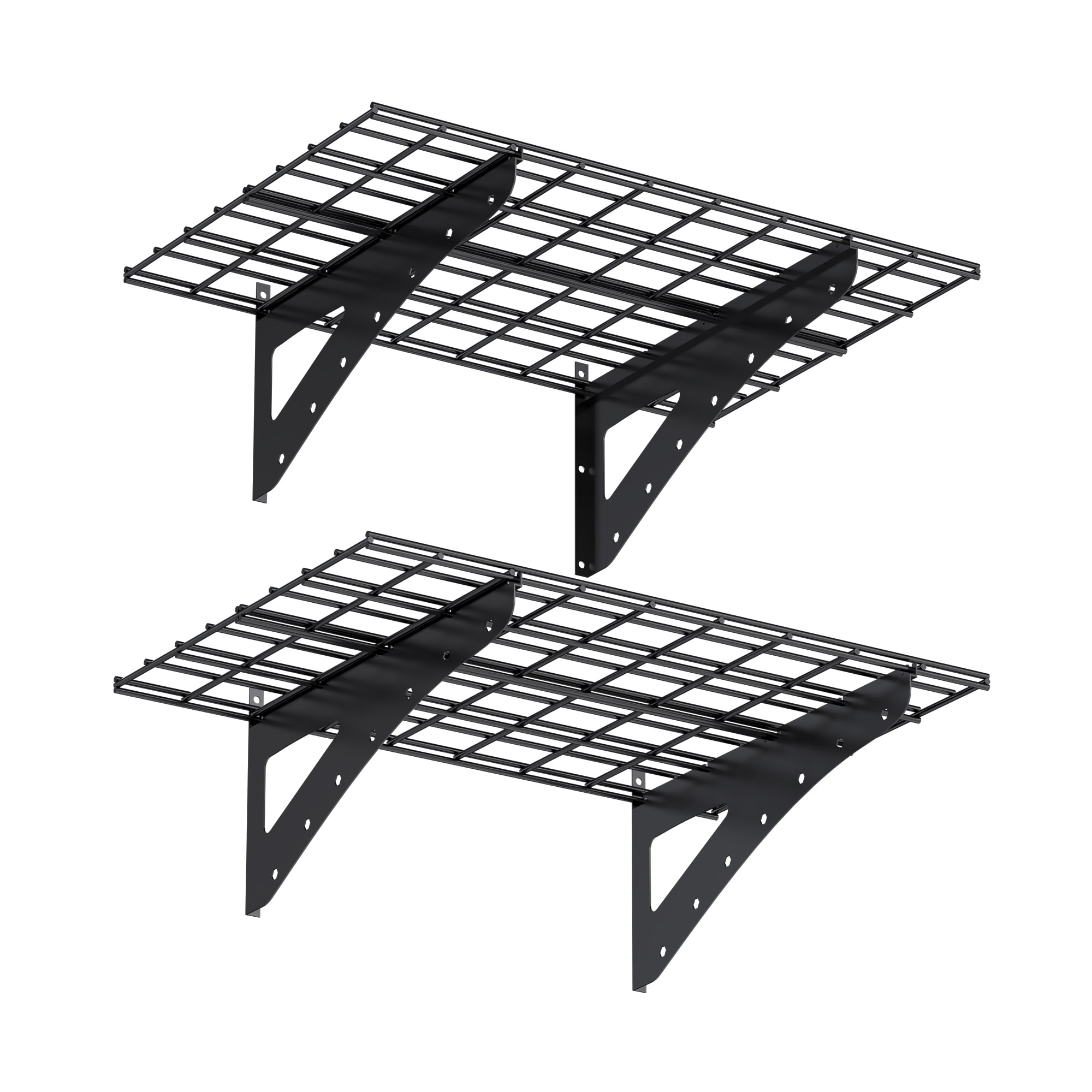 Black Metal Wall-Mounted Shelf Bracket with Heavy-Duty 200lb Load Capacity - 35.43 x 23.62 x 12 in