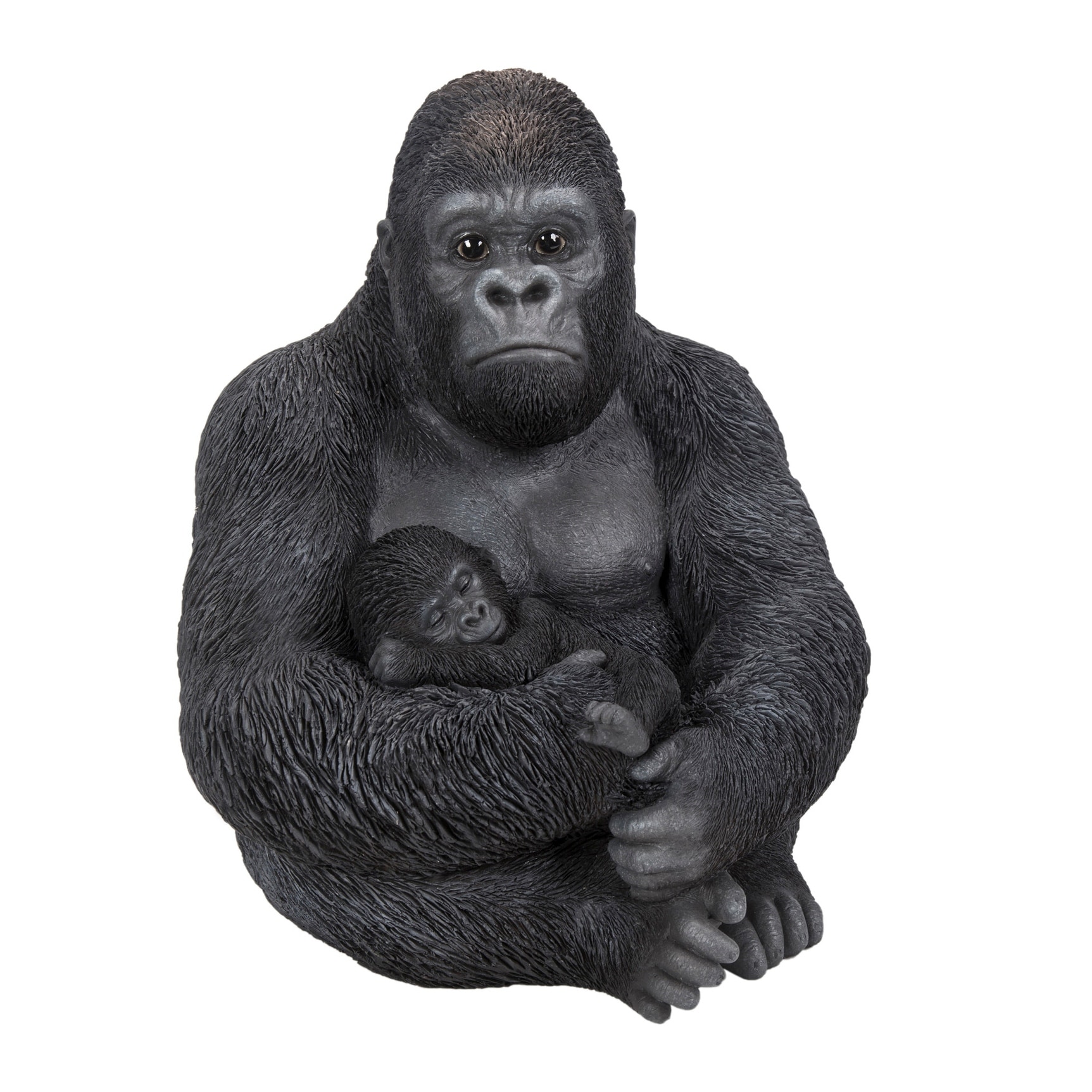 15.75" Sitting Mother Gorilla with a Baby Outdoor Garden Statue