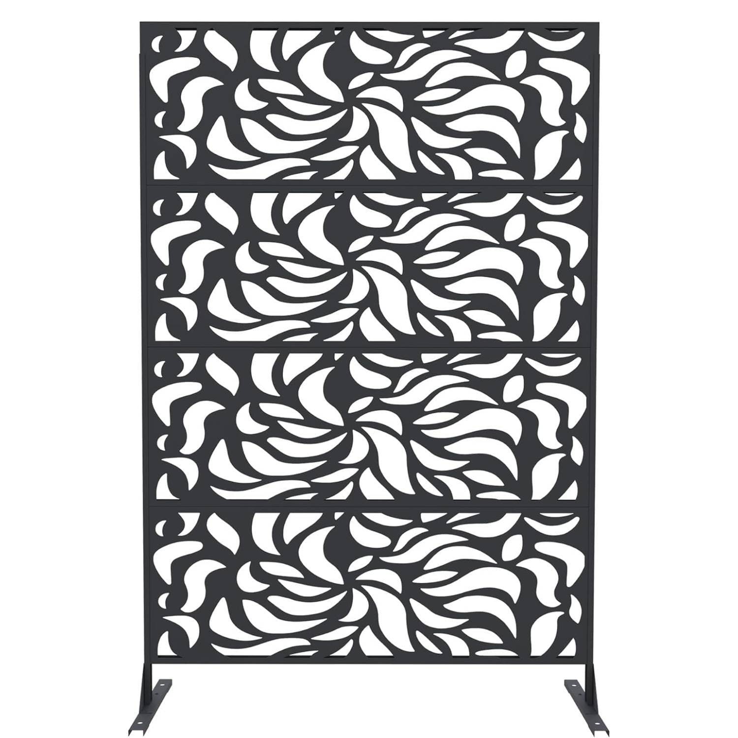 1 Pc Freestanding Decorative Metal Privacy Screen Outdoor with Stand for Balcony, Flower