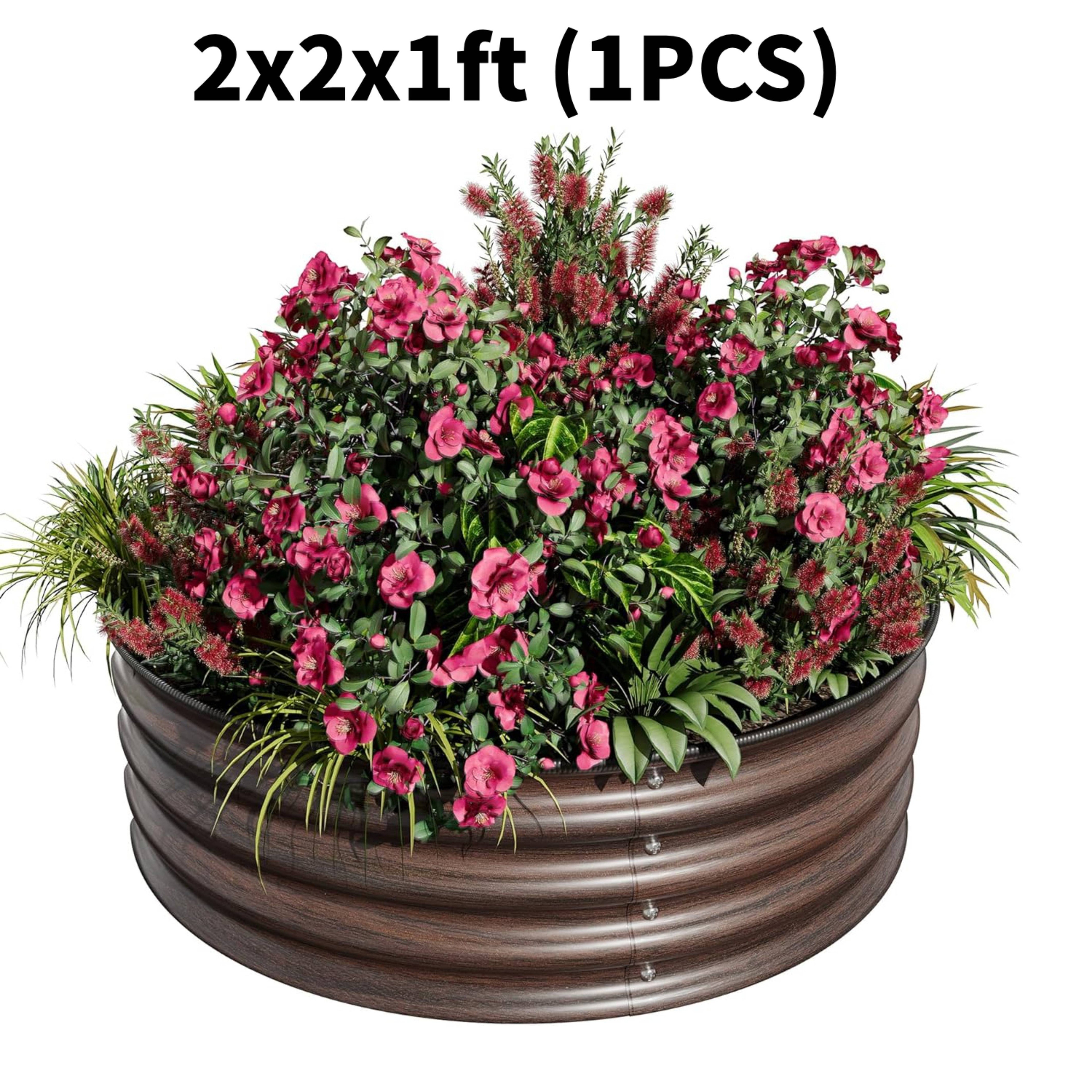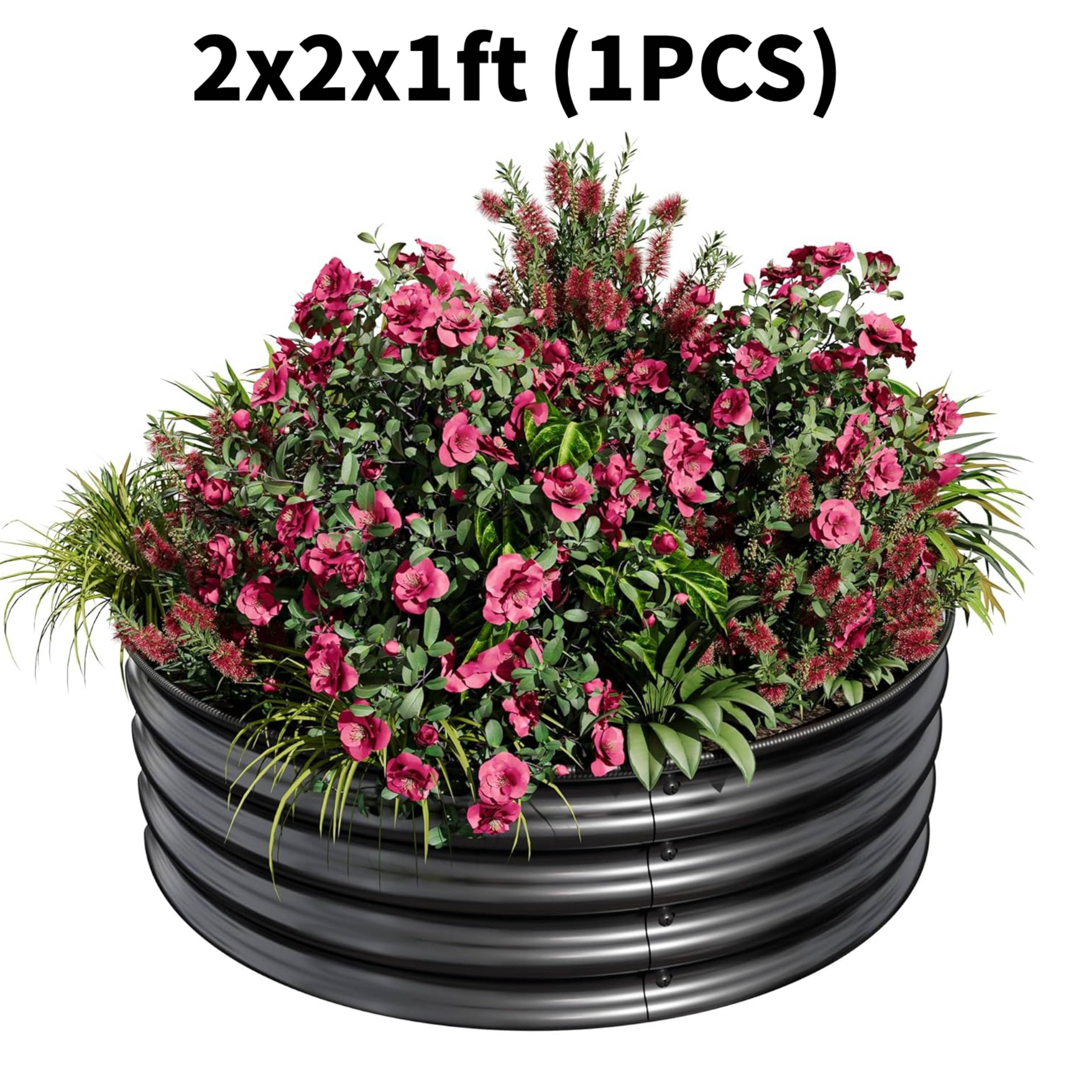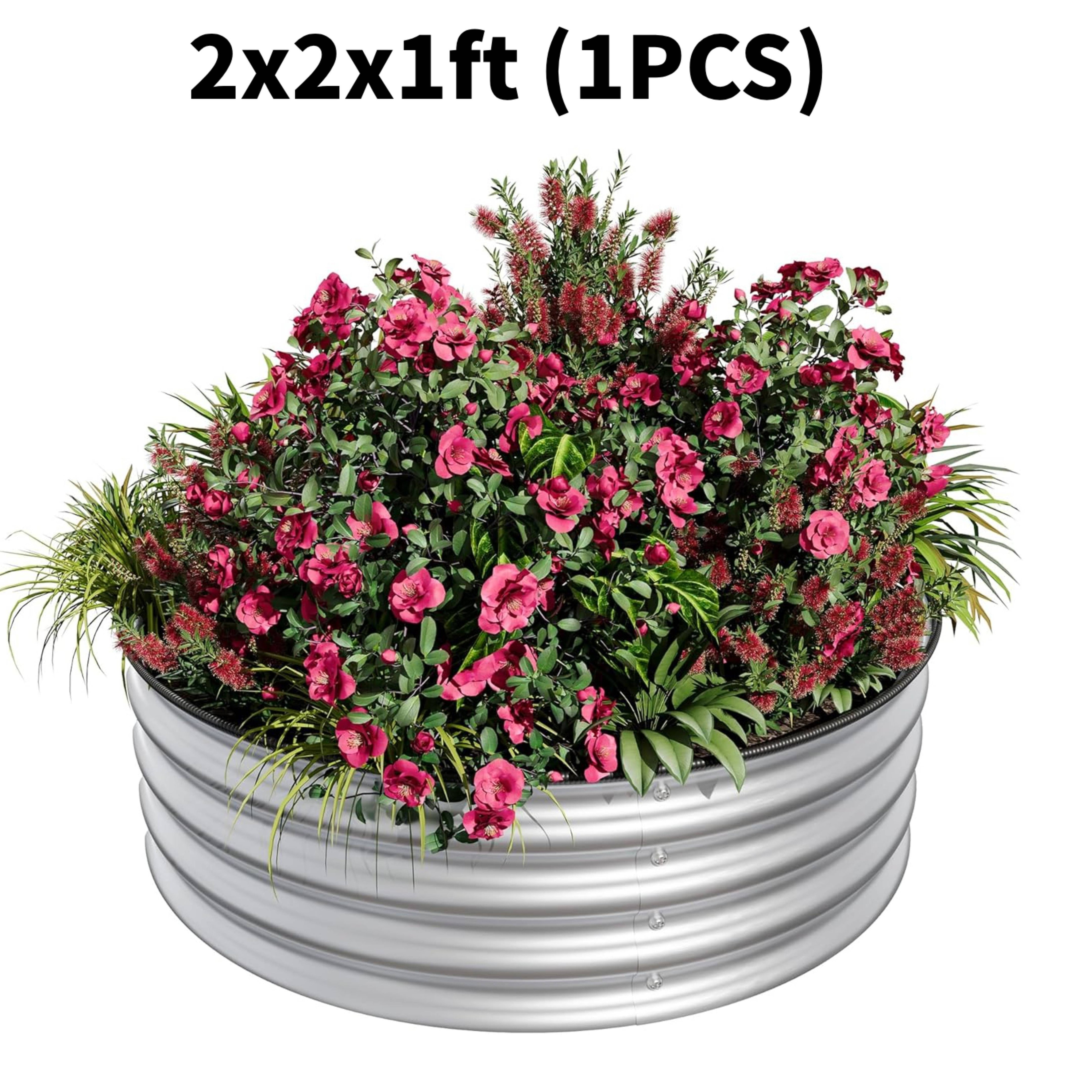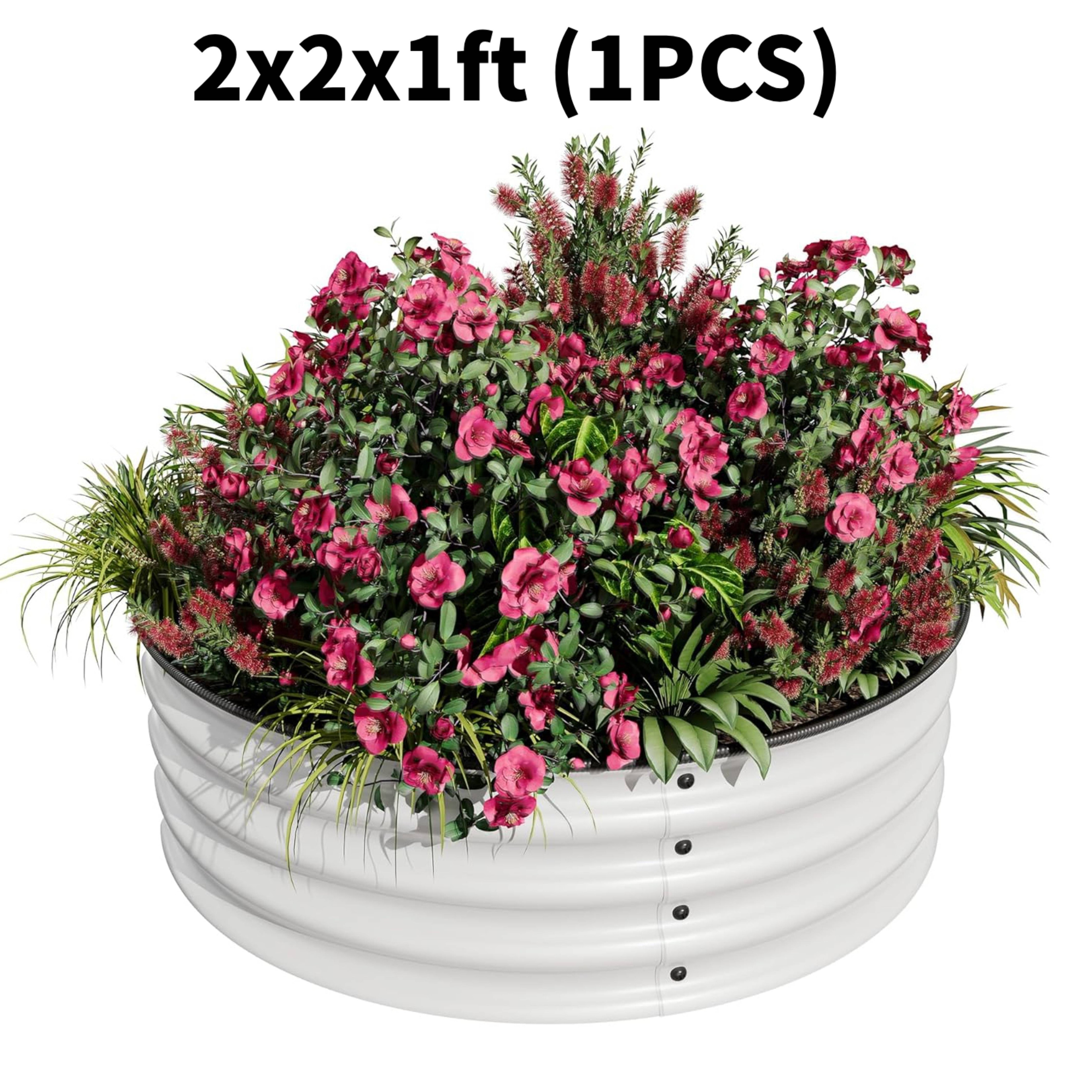 1 PC 2x2x1FT Round Galvanized Steel Raised Garden Bed Kit for Vegetables, Flowers & Fruits