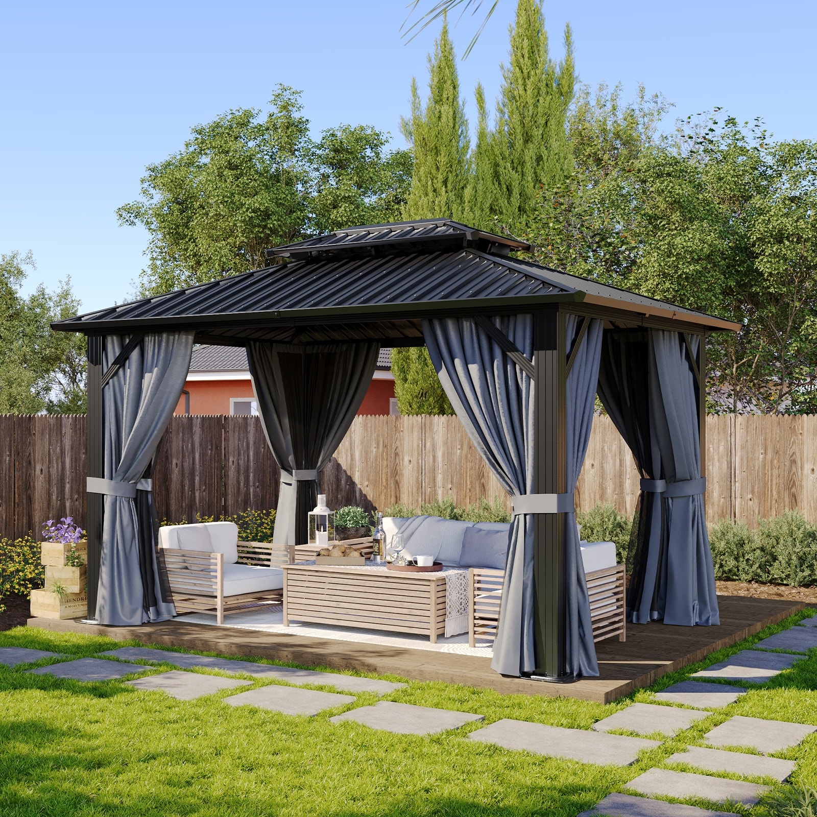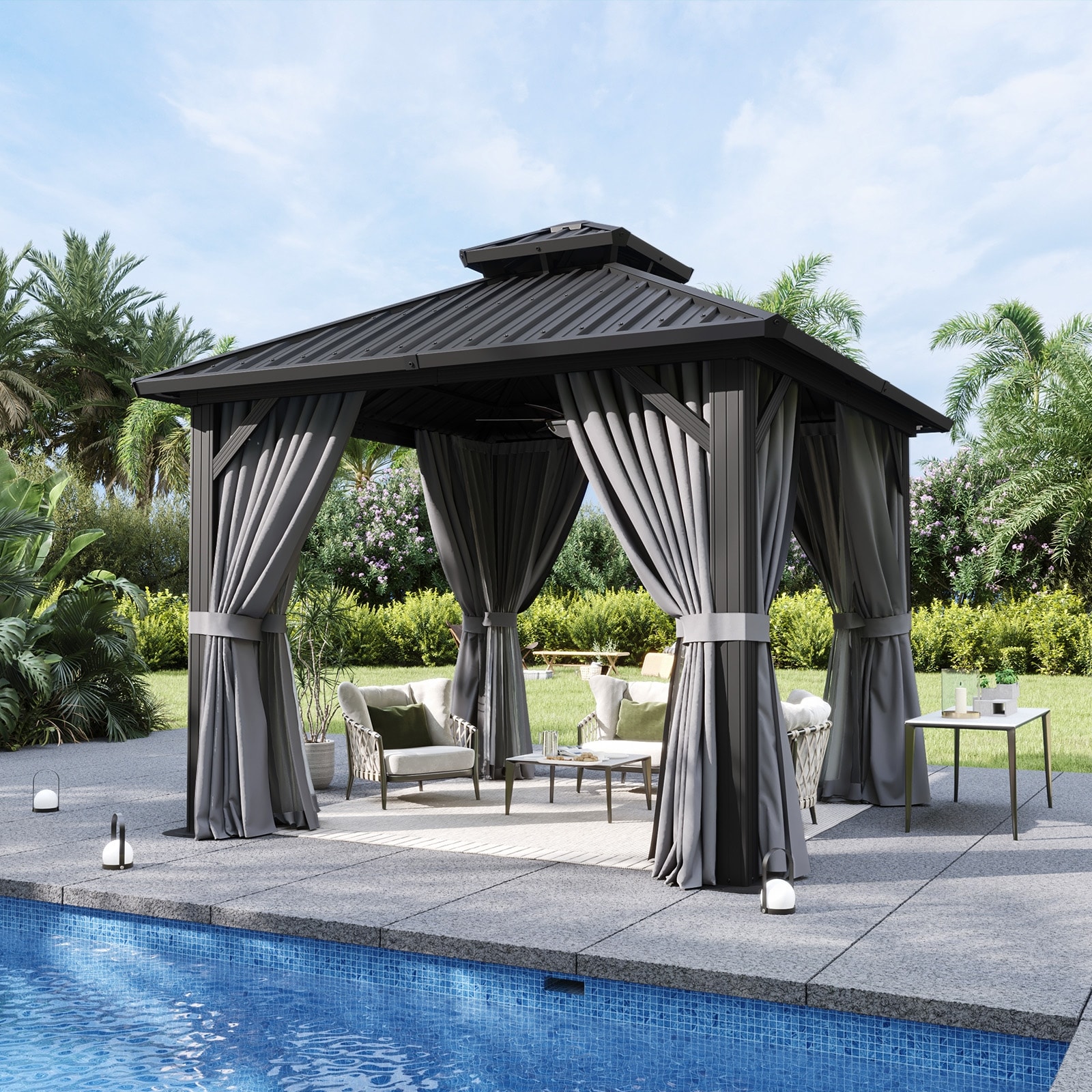 Domi Hardtop Gazebo with Galvanized Steel Double Roof and Aluminum Frame