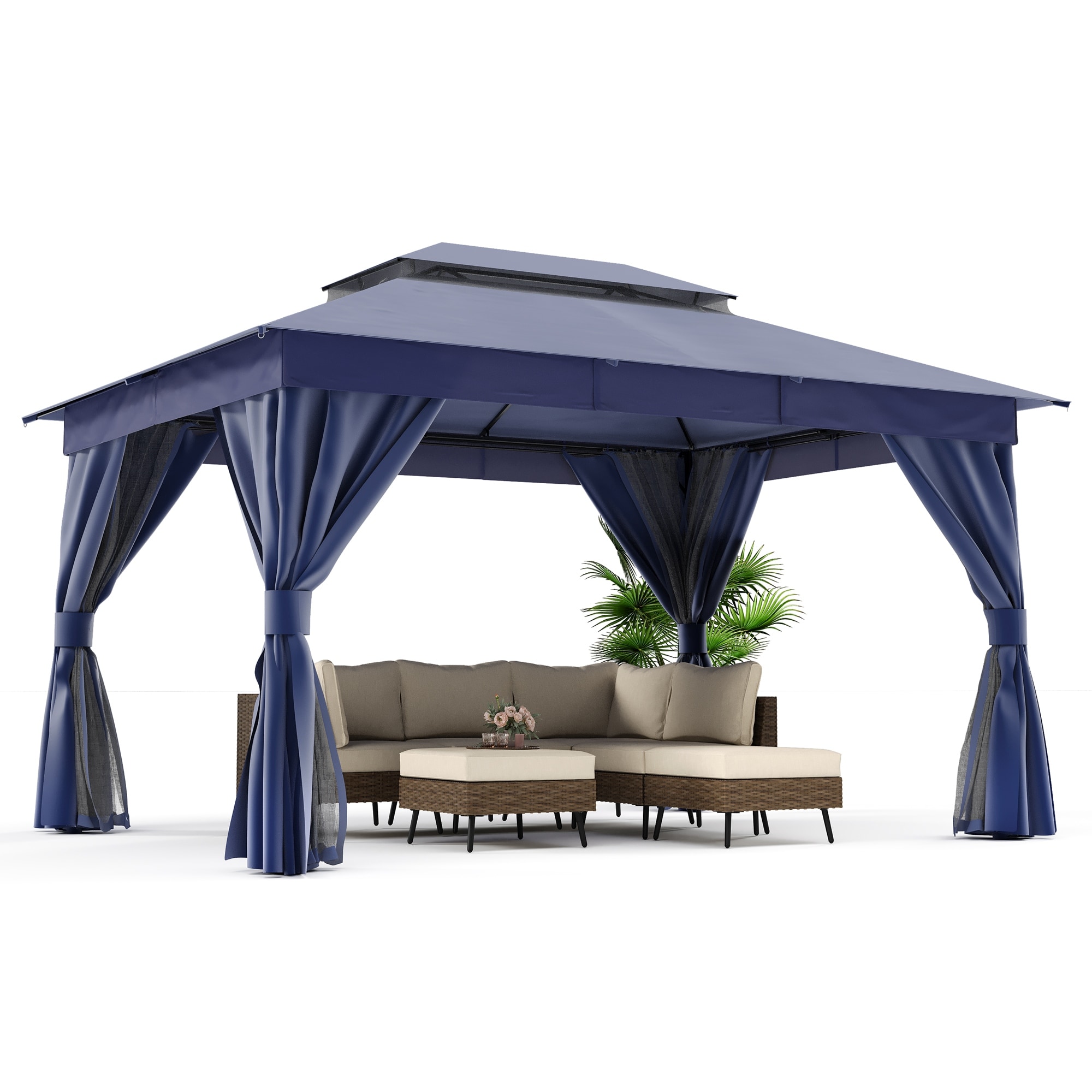 10x13ft Heavy Duty Patio Gazebo with Double Roof Mosquito Net Privacy Screen