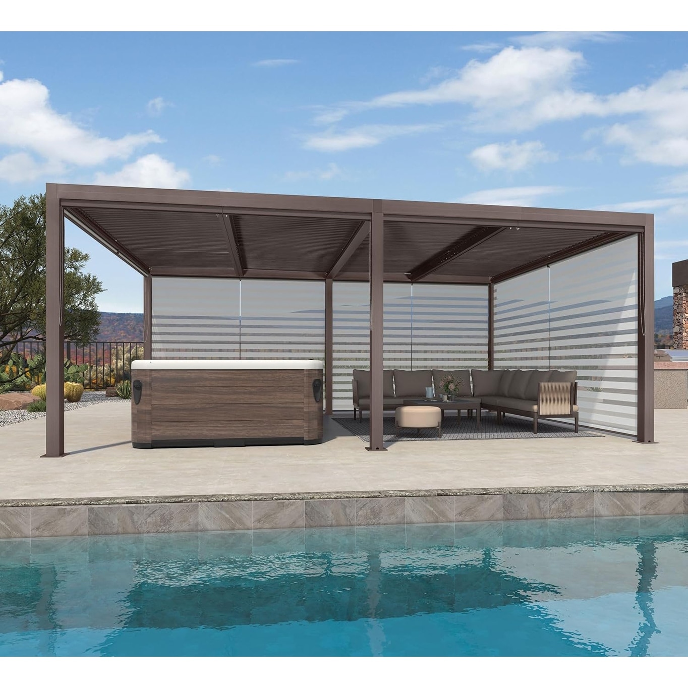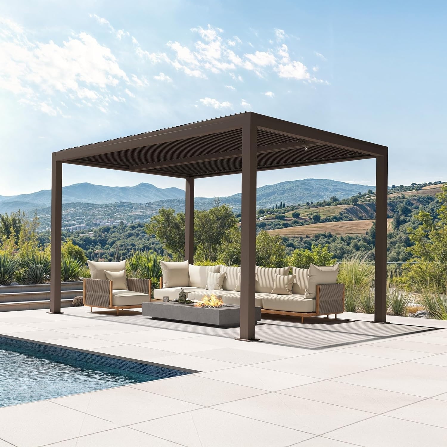 PURPLE LEAF Bronze Louvered Pergola with Adjustable Roof for Deck Backyard Garden Hardtop Gazebo