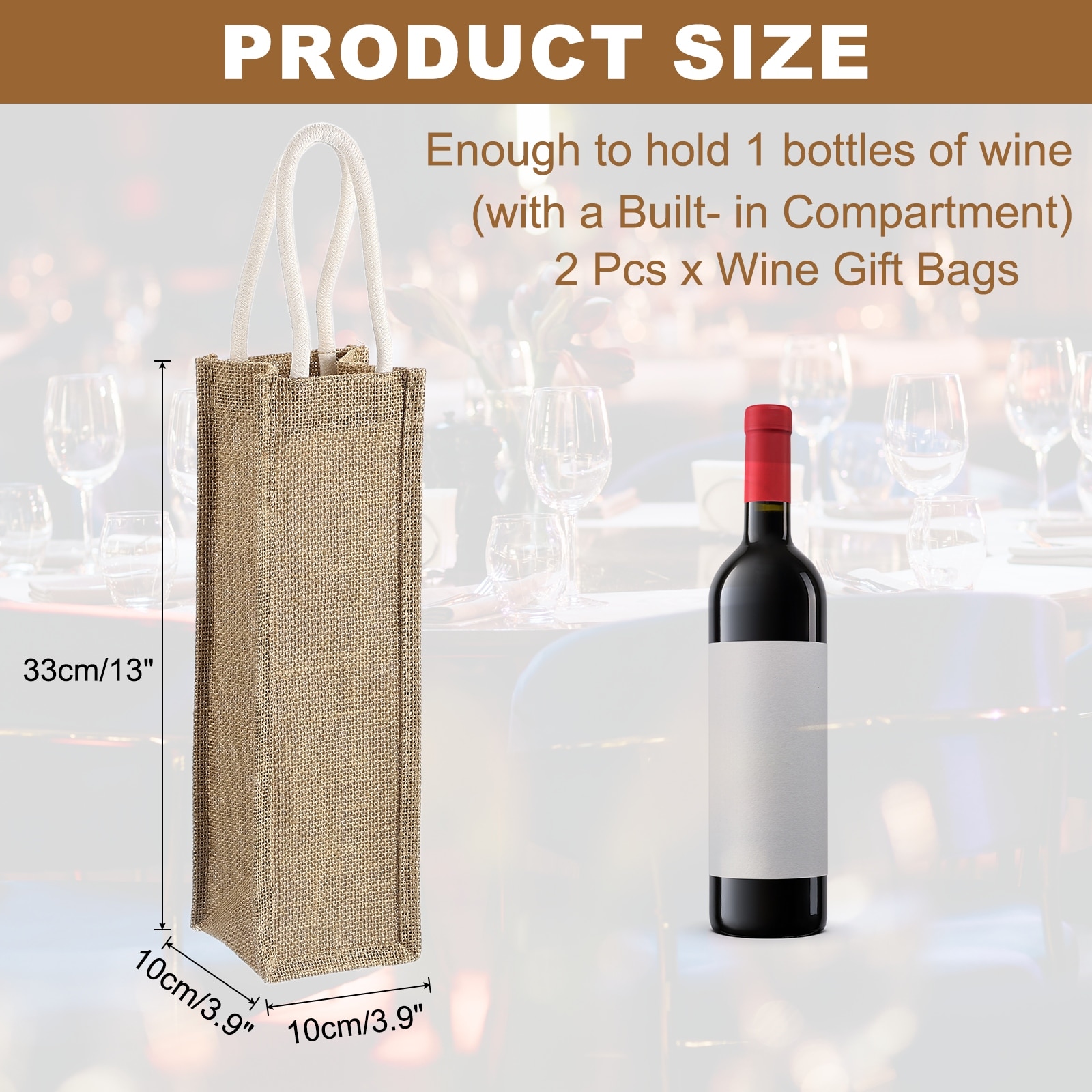 Wine Tote Bag, Reusable Burlap Wine Gift Bags with Cotton Handles for Wedding Gifts Beach Holiday Party Home Storage - Brown
