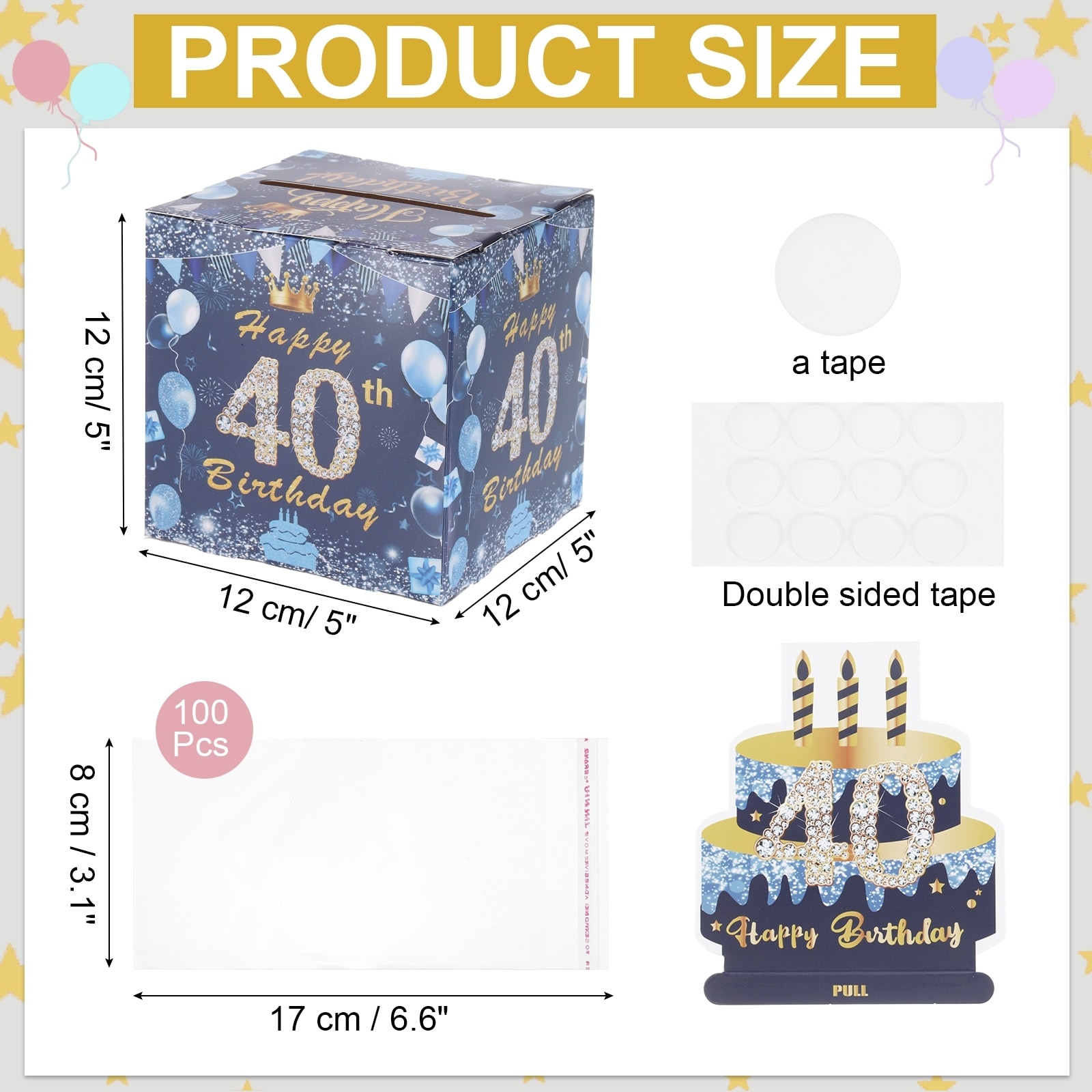 Birthday Money Box for Cash Gift, Birthday Money Pull Box with 100pcs Transparent Bags for Birthday Card Party Decorations
