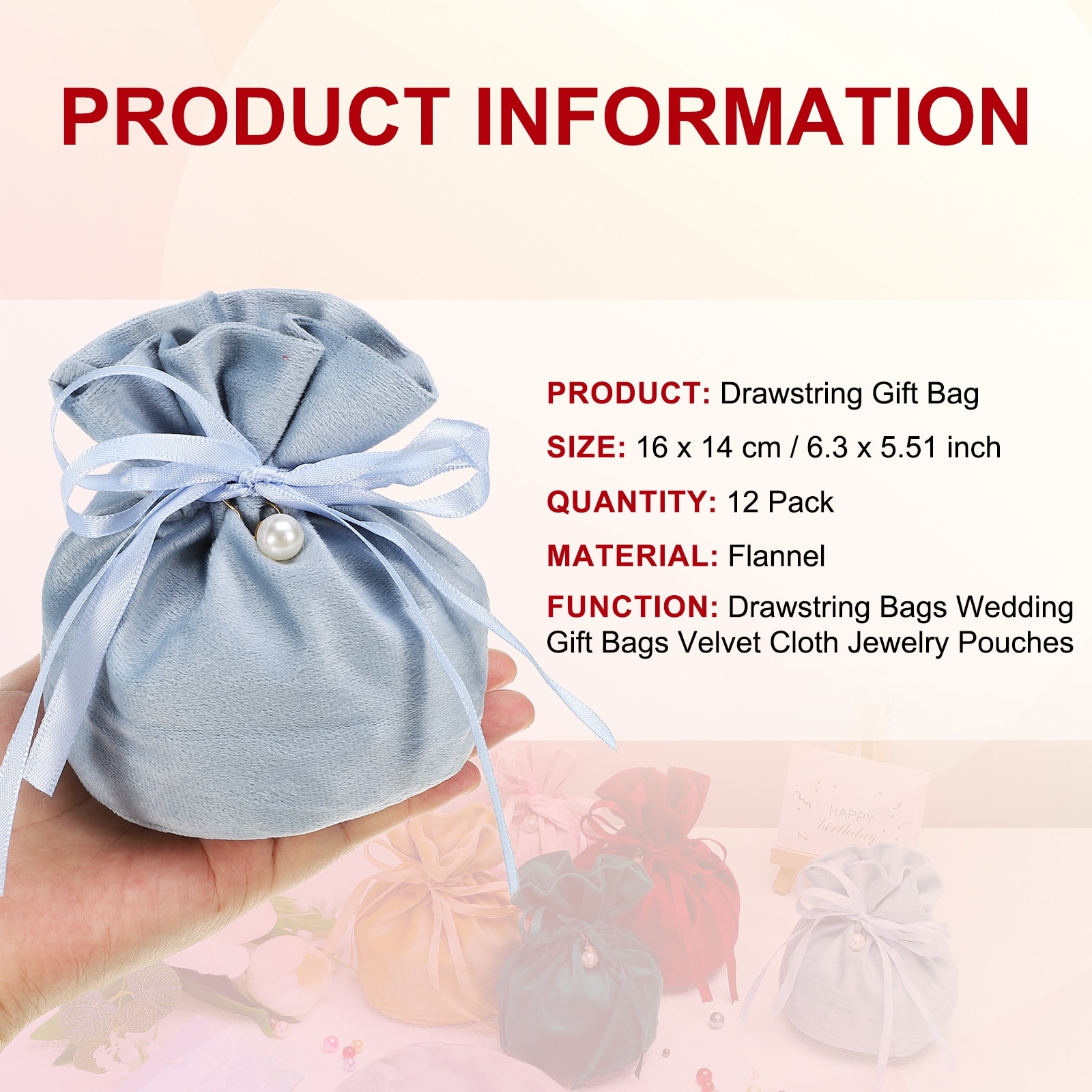 Velvet Drawstring Bags, Storage Small Pouch Gift Wrapping Bag for Wedding Party Favors, Jewelry Crystal DIY Craft - 14.5cm x 9xm