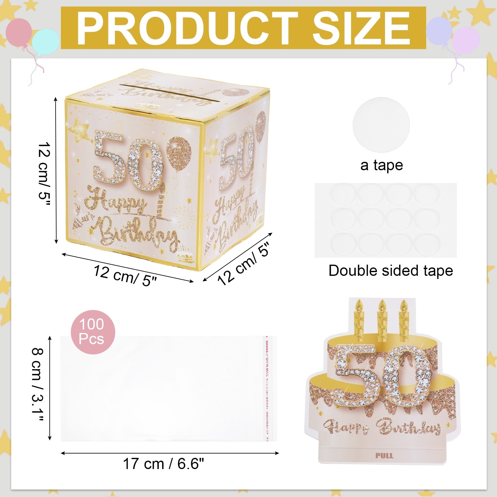 Birthday Money Box for Cash Gift, Birthday Money Pull Box with Transparent Bags for Birthday Surprise - Pink Gold