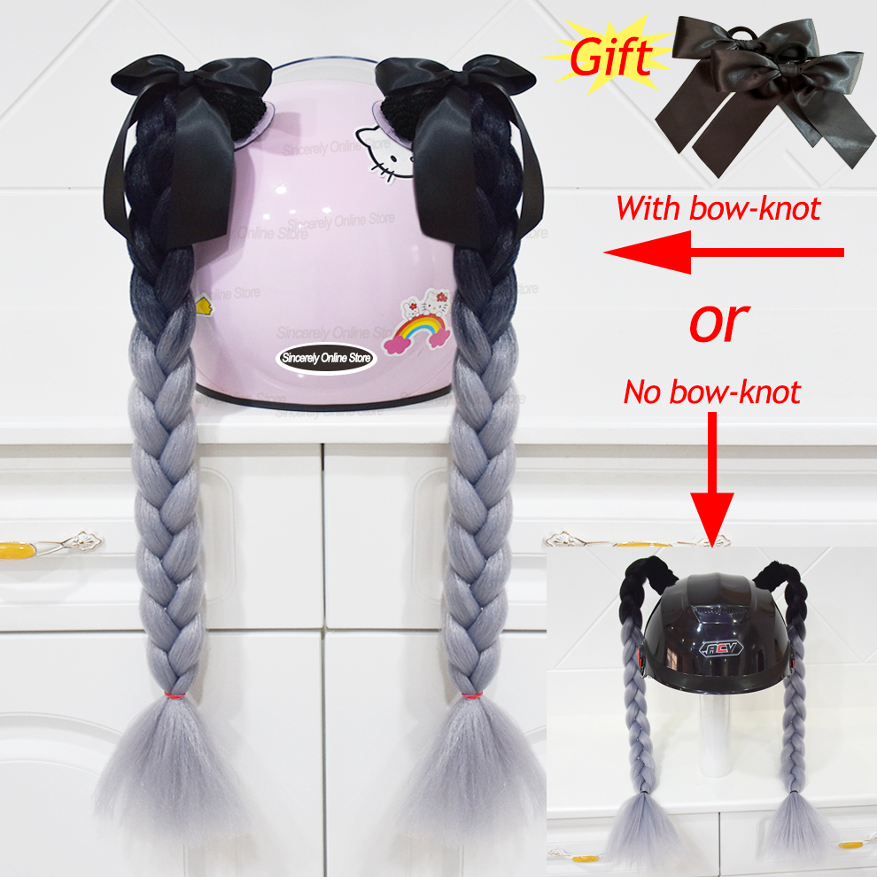 Twist Dual Pigtail Wig For Motorcycle Helmet, Women Braided Hairpiece With Sucker Attachment For Motorbike Helmets 2pcs B37(no Helmet)