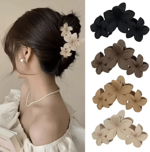 Vintage Flower Shark Hair Clip Frosted Grab Clip Hair Accessory For Women mixed Color 4pcs