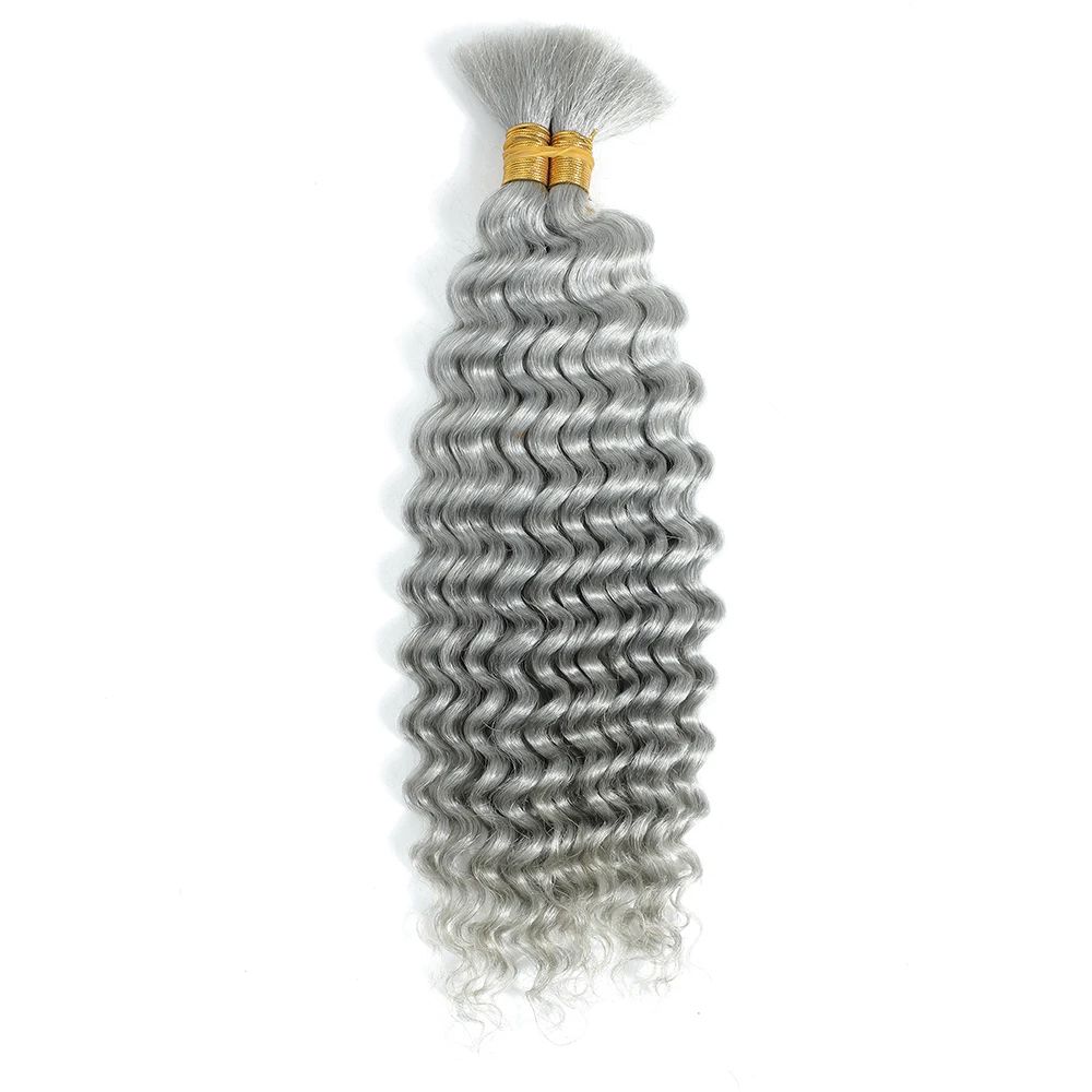 Brazilian Virgin Human Hair Deep Wave Bulk, No Weft Braiding Hair For Boho Braids grey 16inches