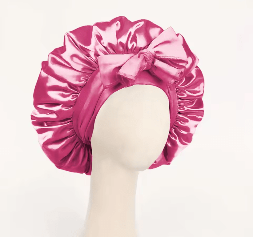 Adjustable Satin Bonnet For Sleeping With Tie Band Soft Hair Protection For Women And Men dark Pink