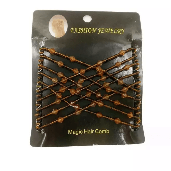 Women Elastic Beads Banana Clip Hairpin Stretch Magic Hair Comb Clip Accessories For Stylish Hair Styling And Secure brown