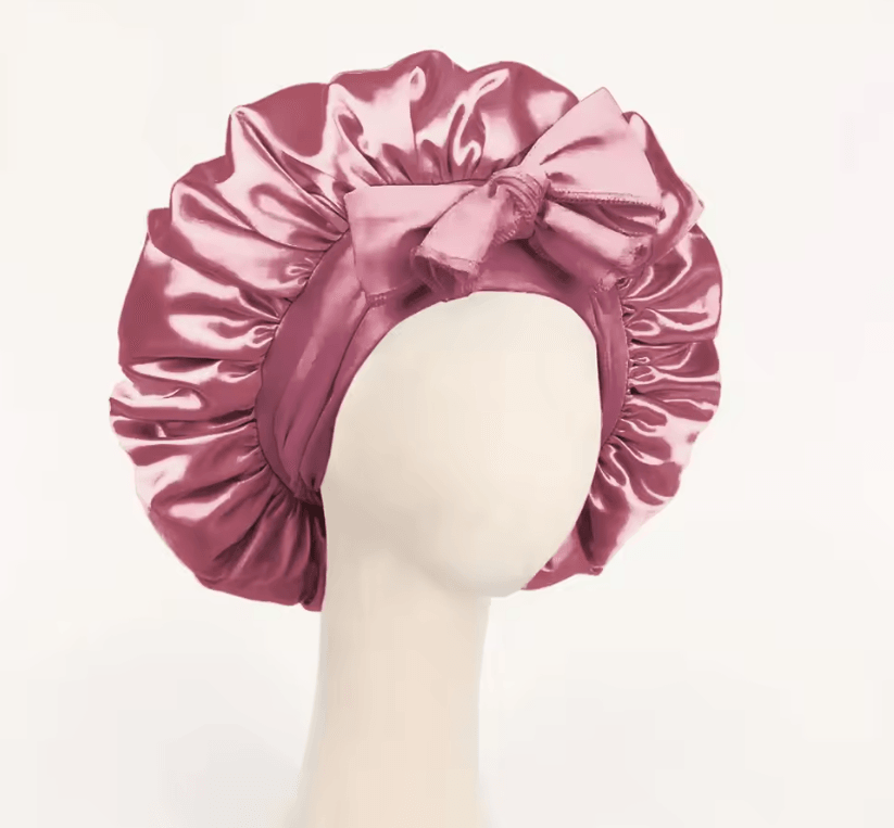 Adjustable Satin Bonnet For Sleeping With Tie Band Soft Hair Protection For Women And Men rose