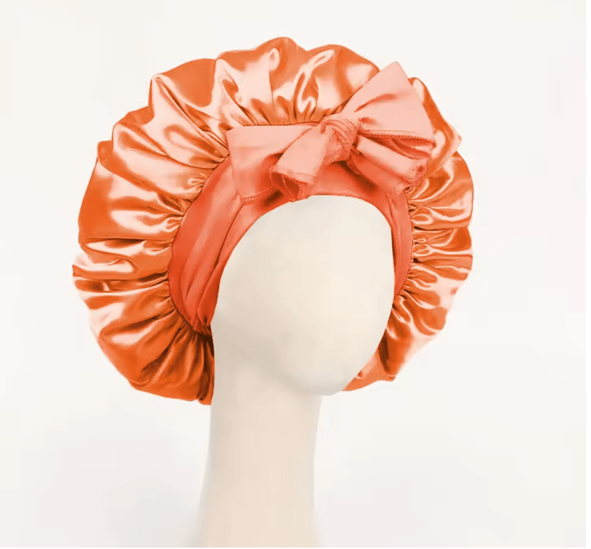 Adjustable Satin Bonnet For Sleeping With Tie Band Soft Hair Protection For Women And Men orange