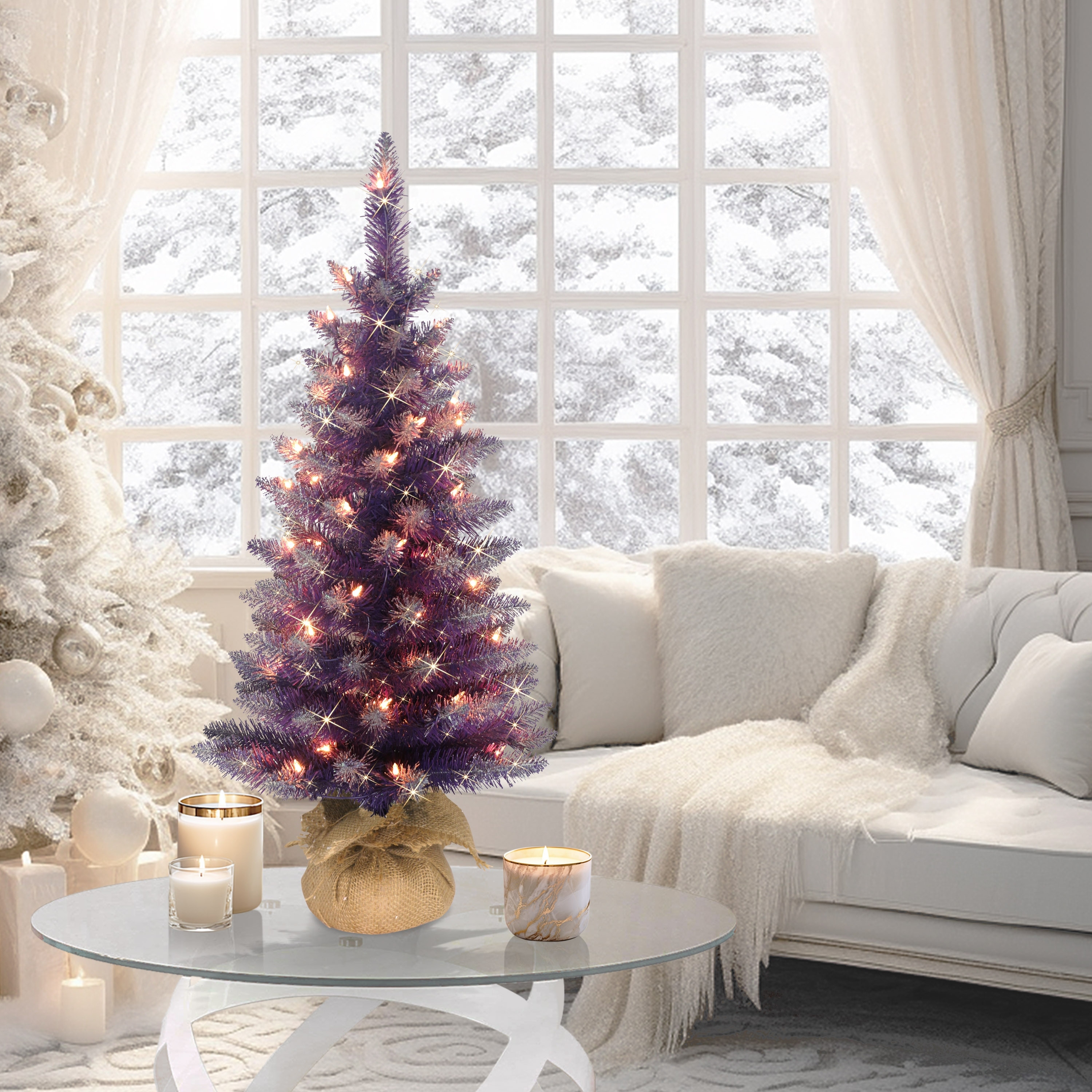 Puleo International 3 ft. Pre-Lit Fashion Purple Artificial Christmas Tree