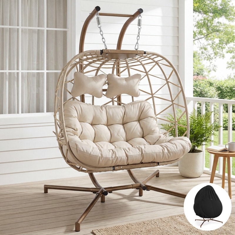 Oversized Outdoor Double Hanging Egg Chair with Cushions, 700 lbs Capacity Swing Chair for Indoor or Patio