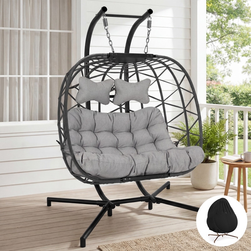 Oversized Outdoor Double Hanging Egg Chair with Cushions, 700 lbs Capacity Swing Chair for Indoor or Patio