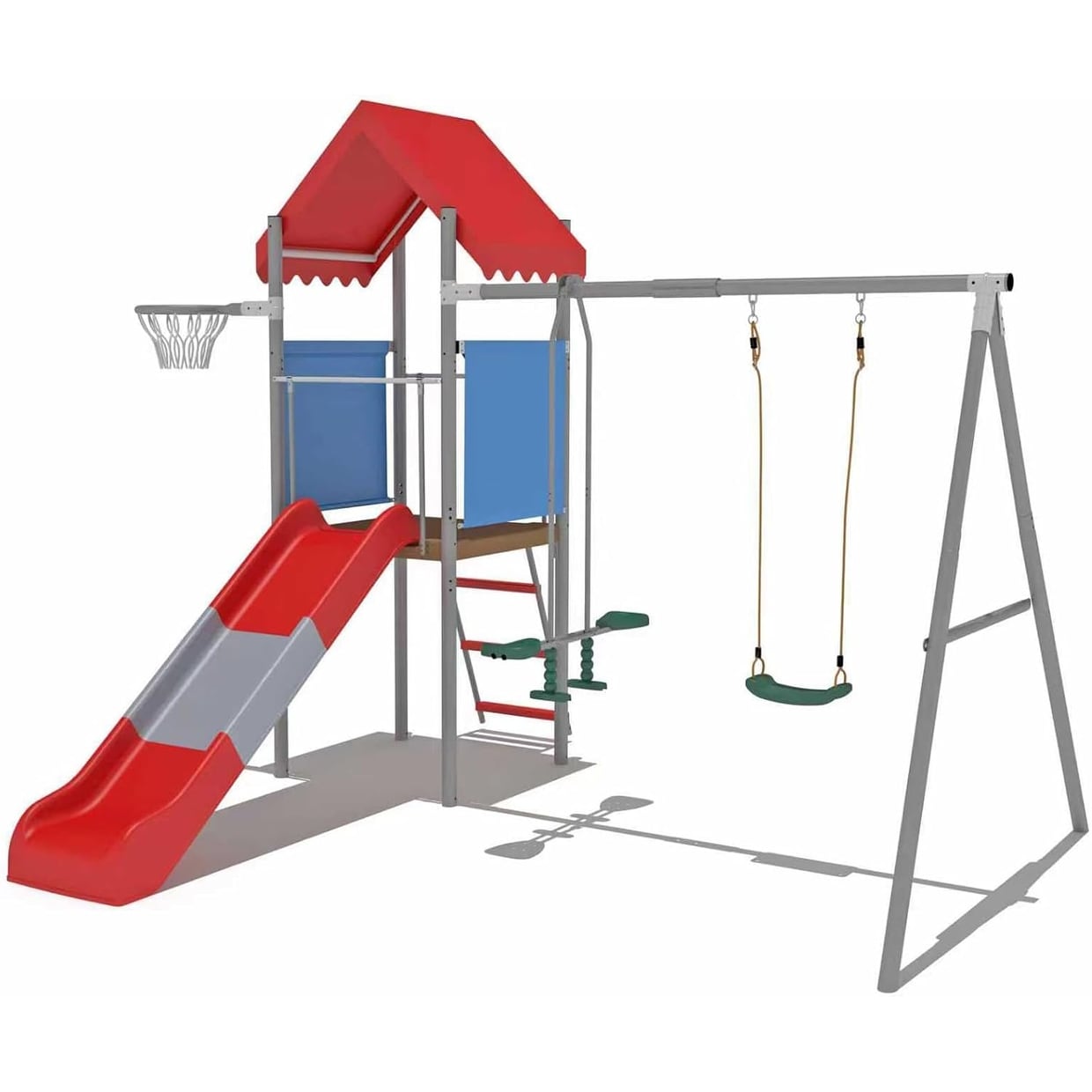 Cedar Wood Swing Set with Slide, Play Deck & Rock Wall, Outdoor Kids Playground for Backyard - Red
