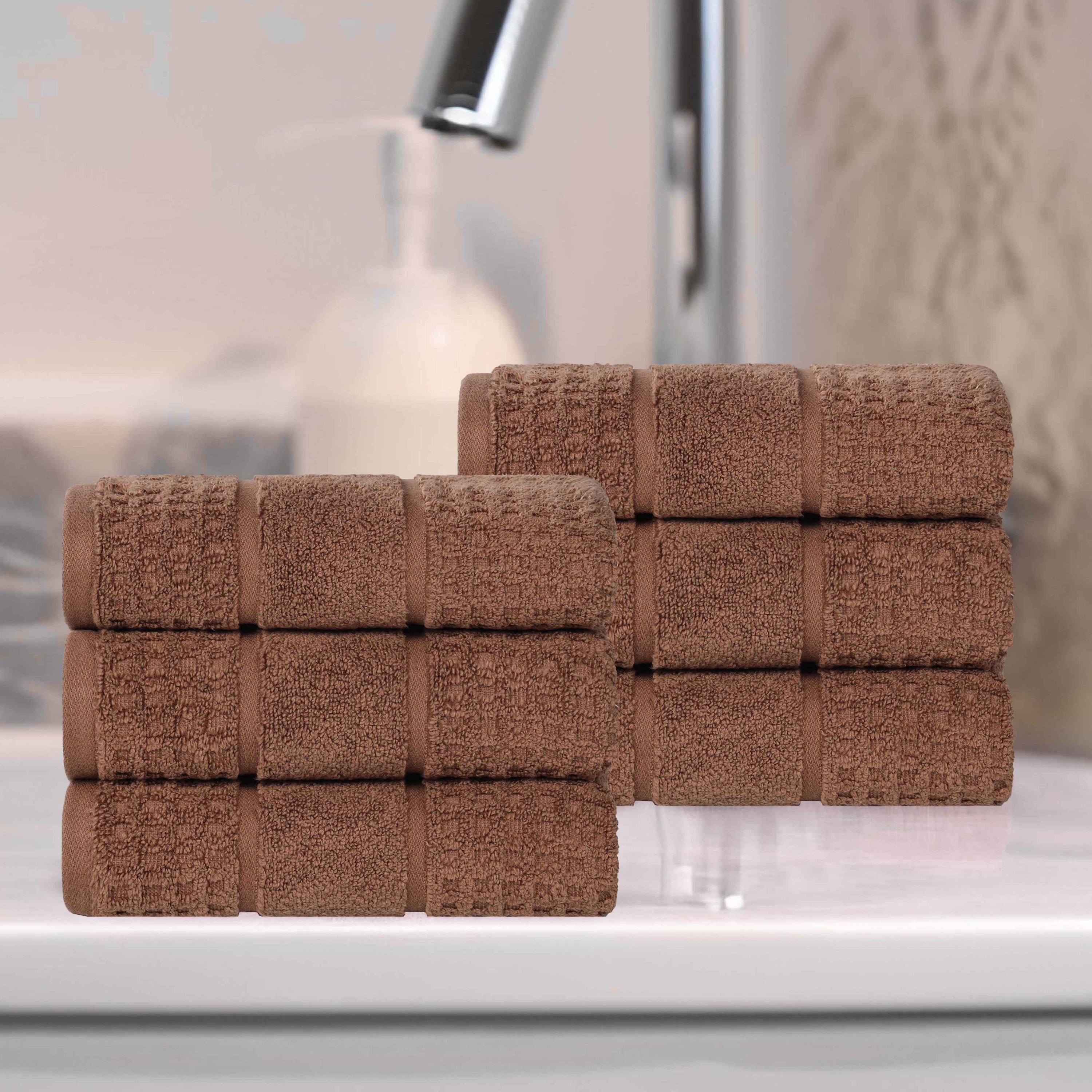 Authentic Hotel and Spa Turkish Cotton Cheetah Jacquard Trim Latte Brown 4-piece Hand Towel Set