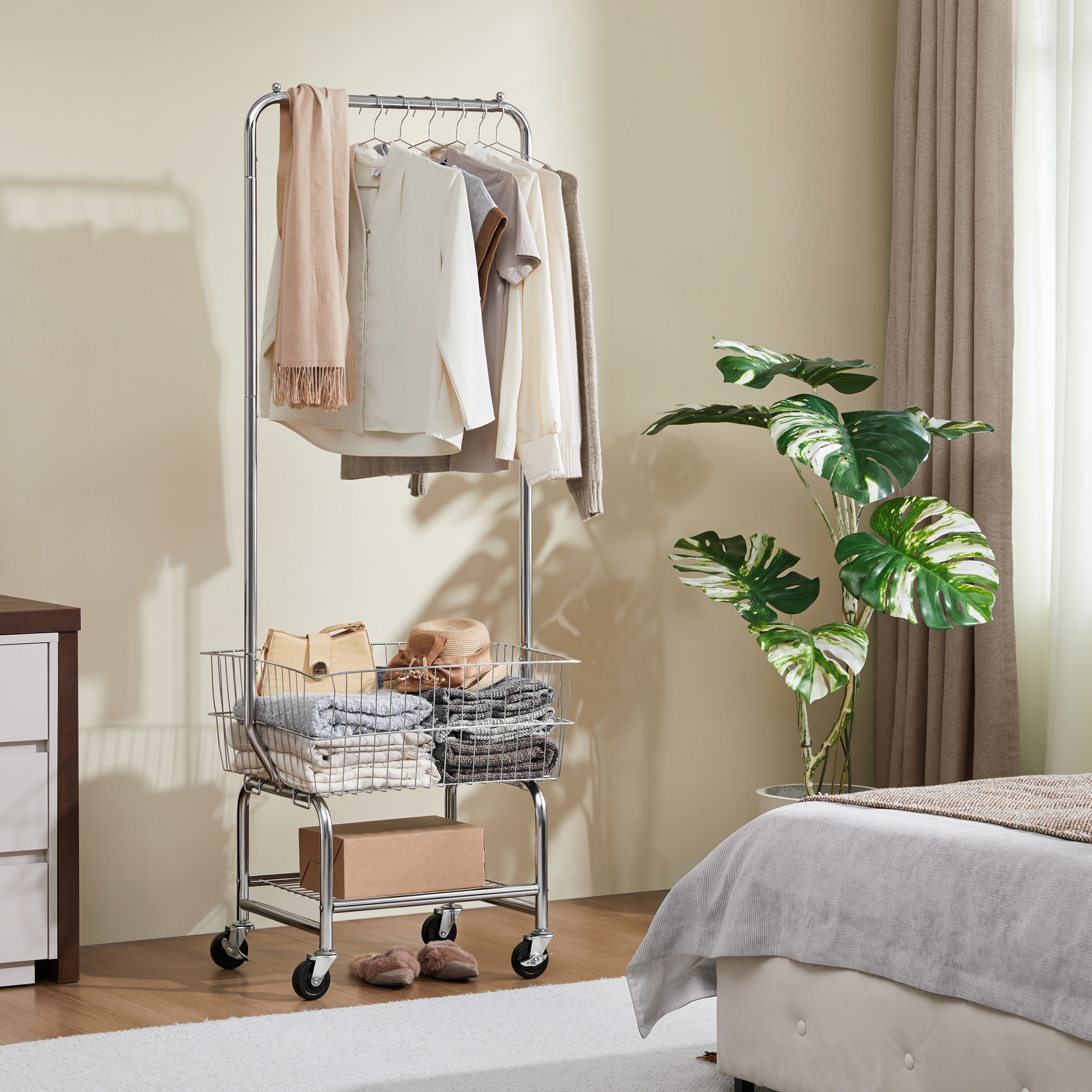 Yaheetech Commercial Laundry Cart Laundry Butler with Wheels and Bottom Shelf for Bathroom