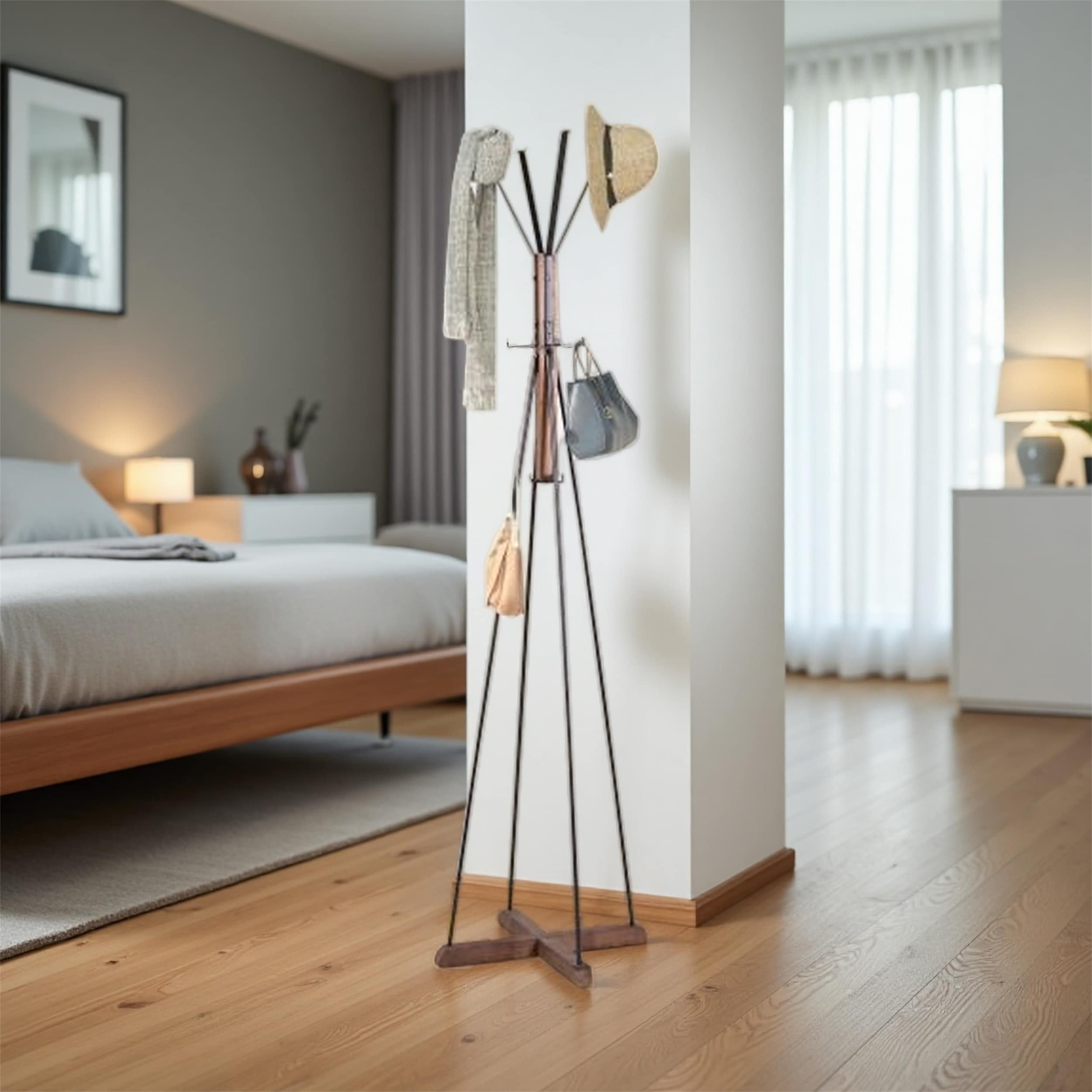 Freestanding Coat Rack with Multiple Hooks, Entryway Organizer