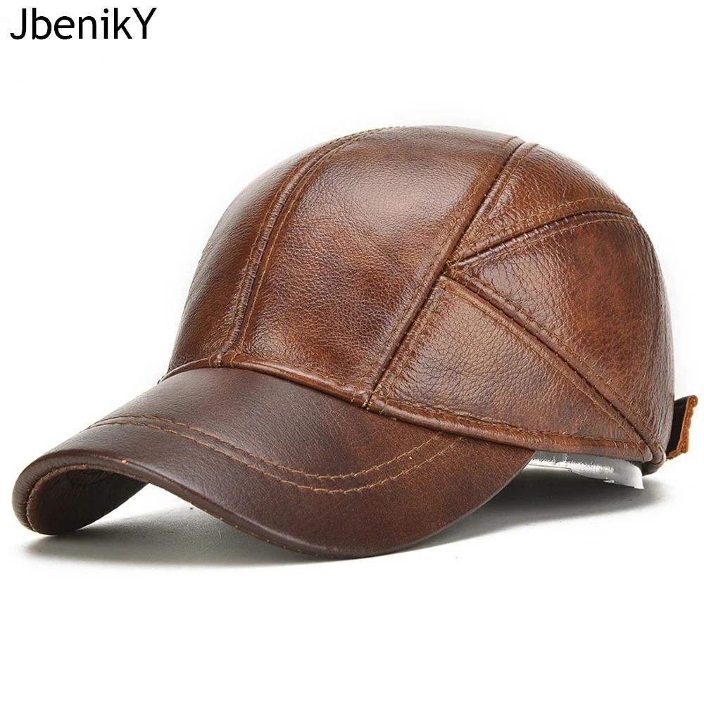Mens Real Leather Earflap Cap Cowhide Baseball Hat For Fall And Winter black