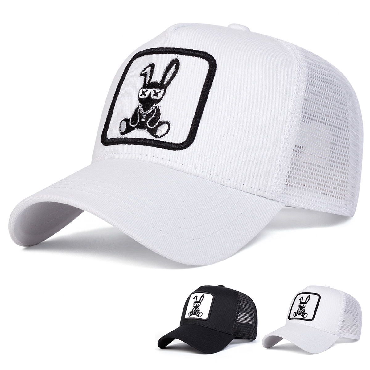 Spring Summer Outdoor Sunscreen Hat, Unisex Cartoon Rabbit Embroidery Baseball Net Caps, Adjustable Casual Trucker Hats white