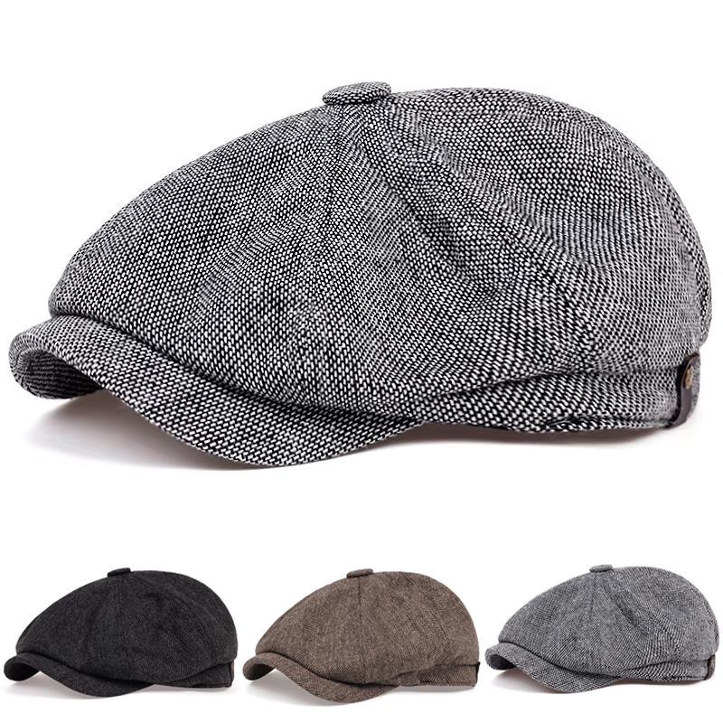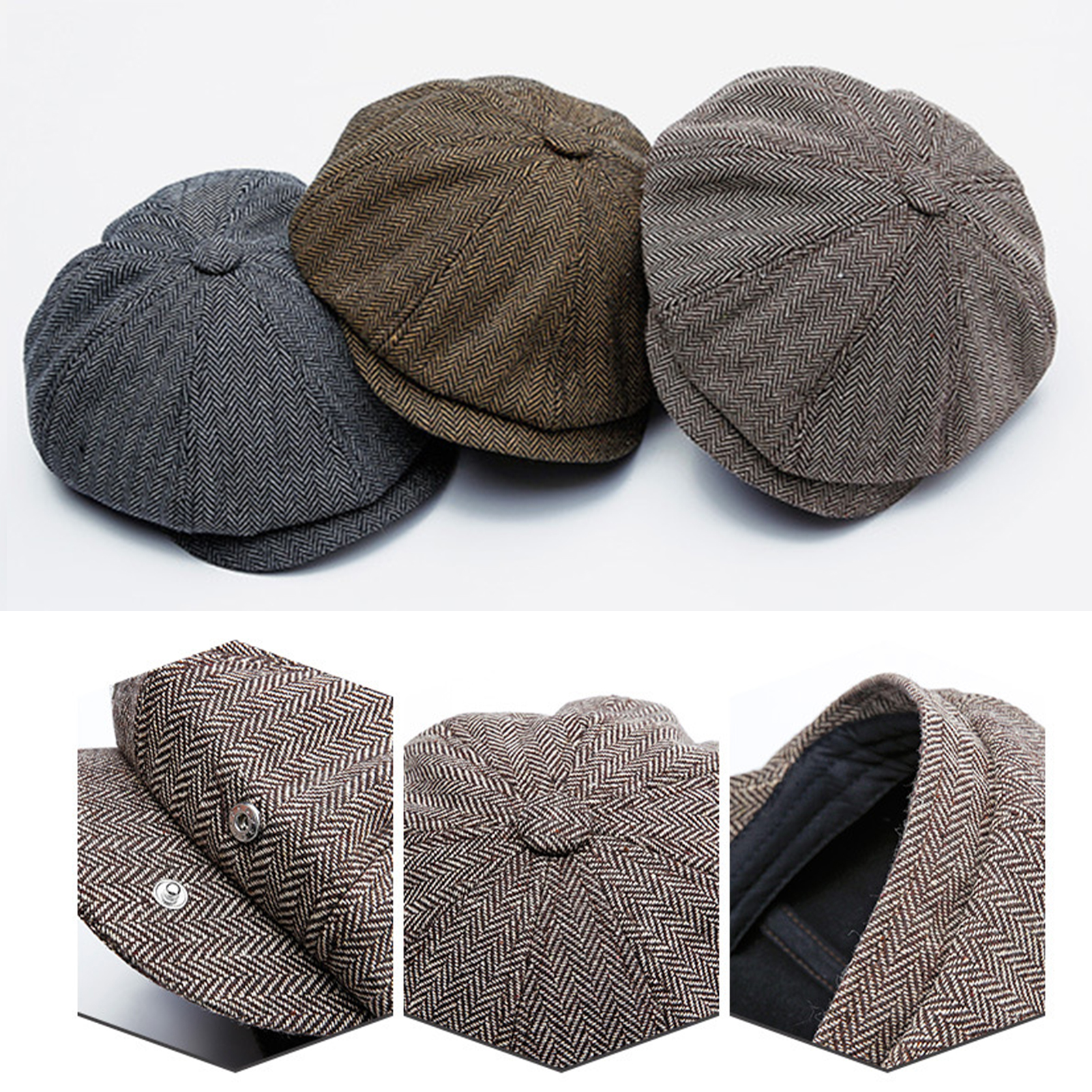 Unisex Vintage Newsboy Cap, Classic Retro British Beret Hat, Stylish Twill Flat Hat Wool Octagonal Hats For Winter Warm a l