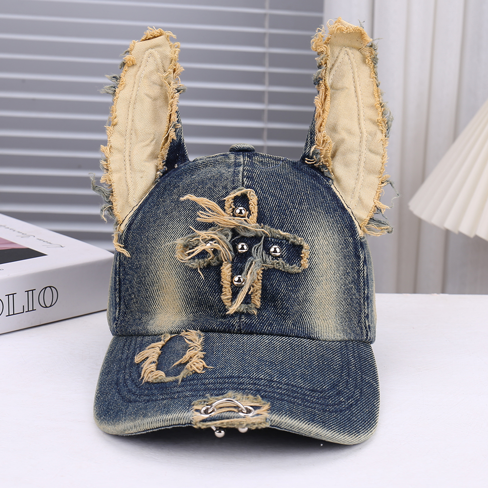 Adjustable Size 3D Ear Decoration Baseball Cap, Unisex Fashionable Hole Design, Trendy Versatile Sun Protection Cap sky Blue
