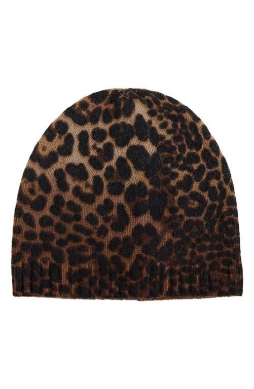 Cheetah Print Cashmere Knit Beanie - Brown - Amicale Hats