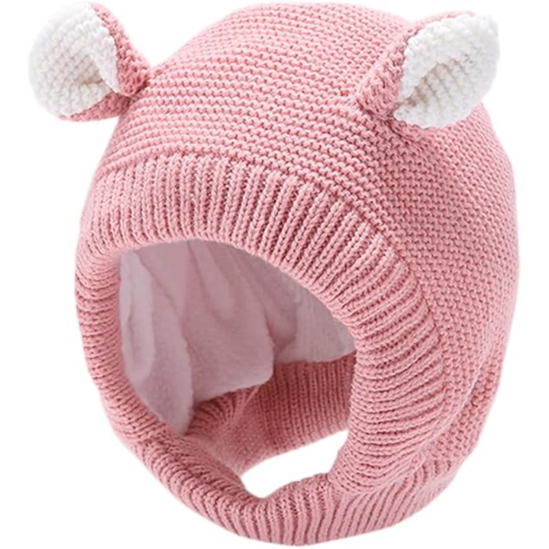 New Knitted Baby Hat Autumn Winter, Girls Boys Toddler Bear Pompom Hat, Outdoor Warm Ear Protection Hat pink