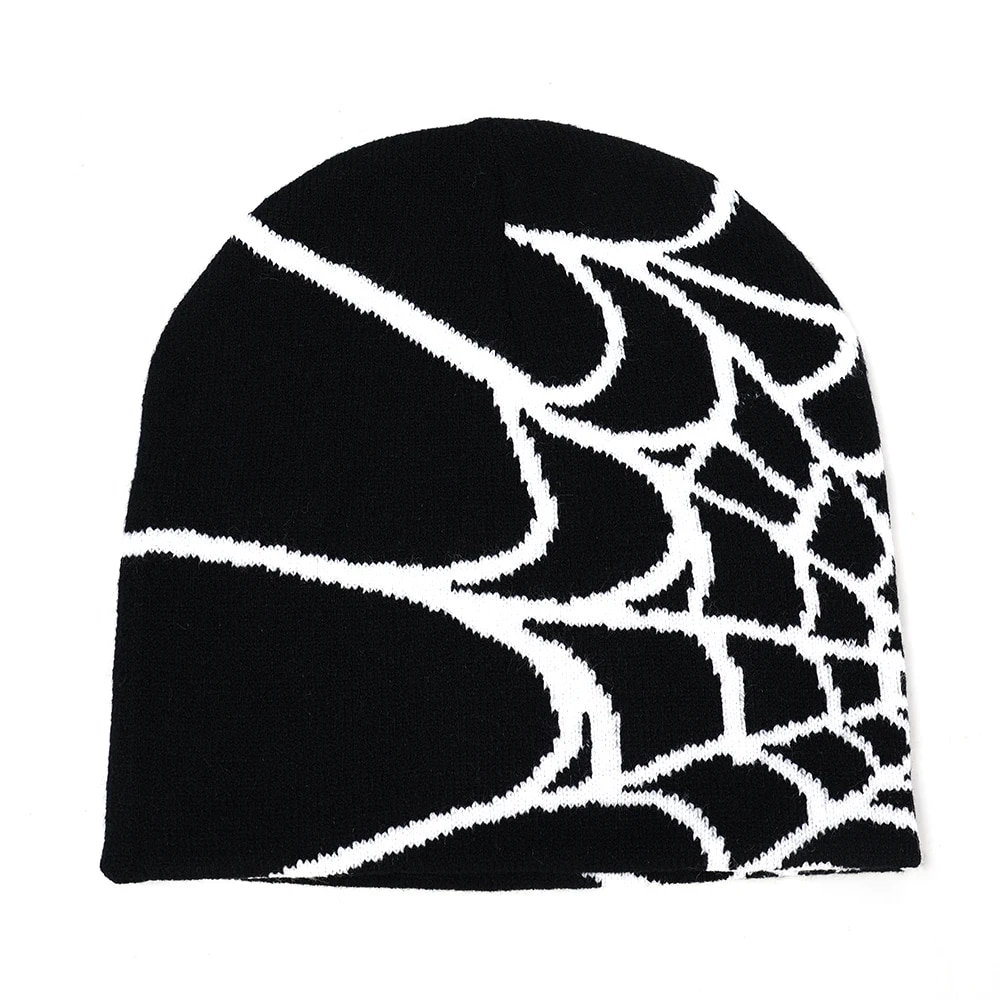 Y2K Goth Spider Web Knitted Hat: Unisex Warm Beanie For Hip hop Street Style Black