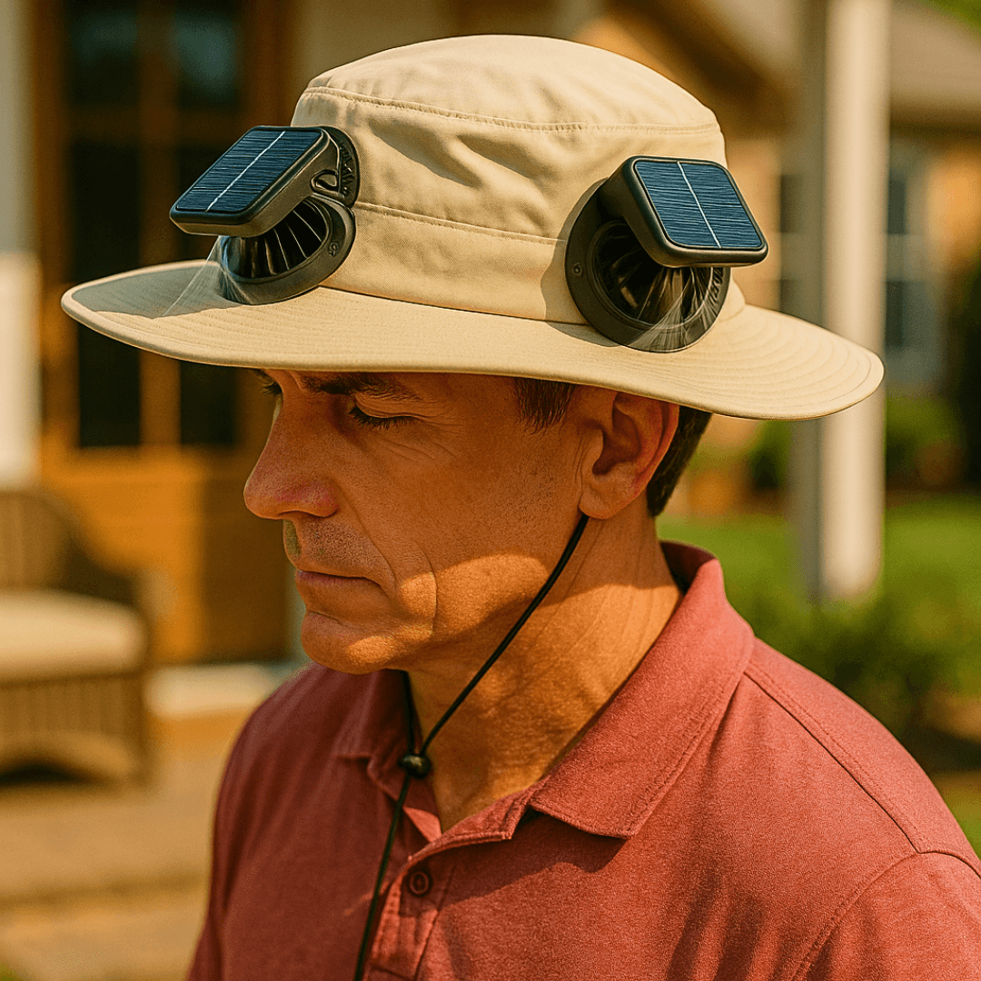 Outdoor Solar Wide Brimme Sun Hat With Fan khaki