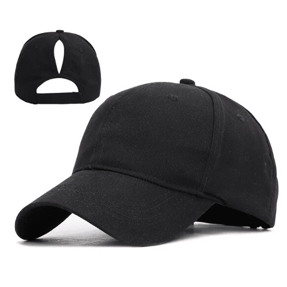 Adjustable Solid Color Ponytail Baseball Cap, Cotton Polo Style Casual Hats black