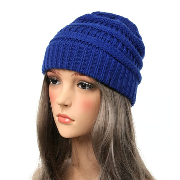 Oversized Knitted Baggy Beanie For Winter | Unisex Wool Ski Slouchy Hat Deep Blue