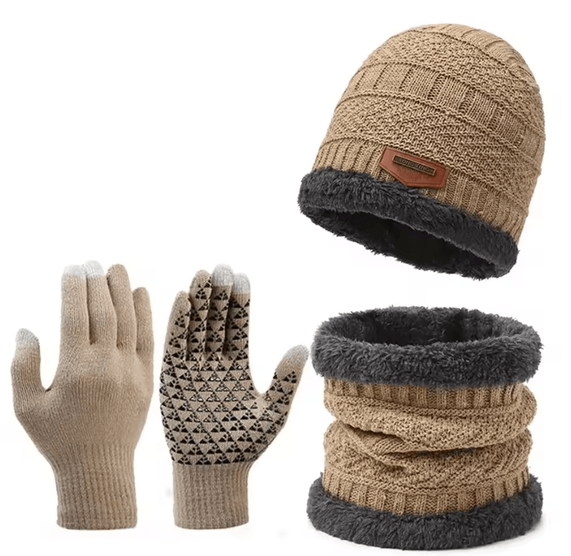 Mens Winter Windproof Hat Scarf And Gloves Set With Thermal Lining khaki