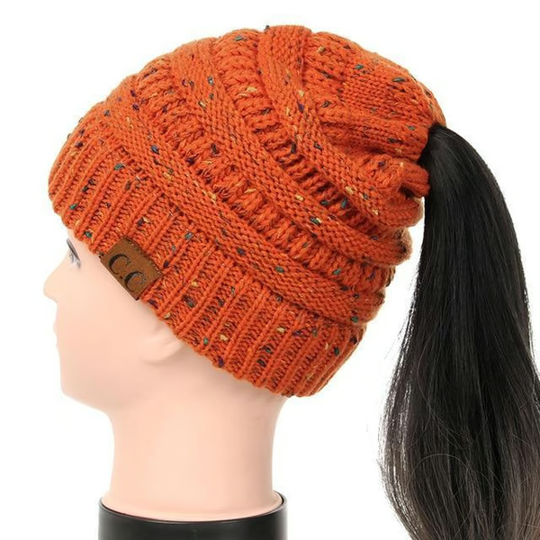 Soft Knit Ponytail Confetti Beanie Orange