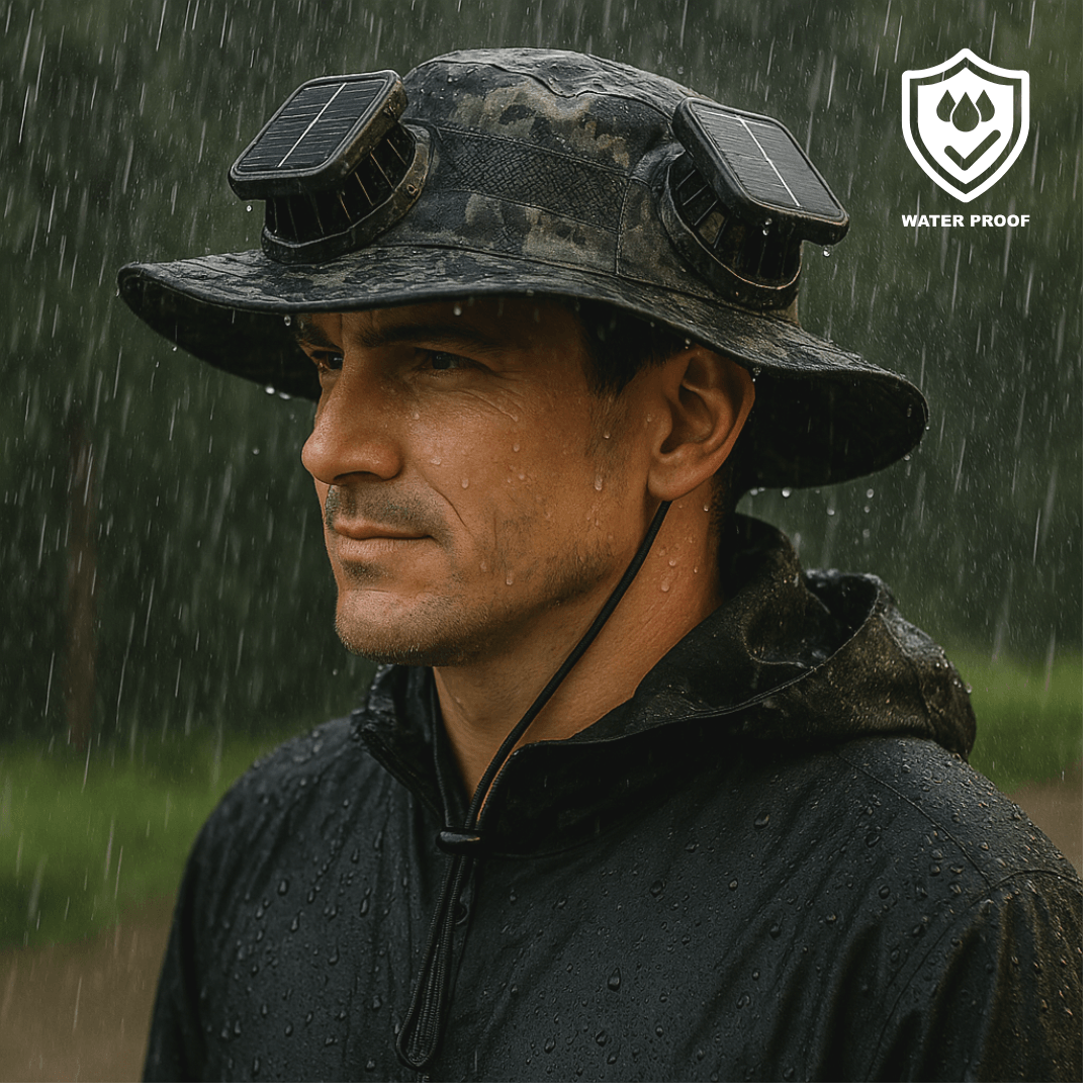 Outdoor Solar Wide Brimme Sun Hat With Fan camouflage
