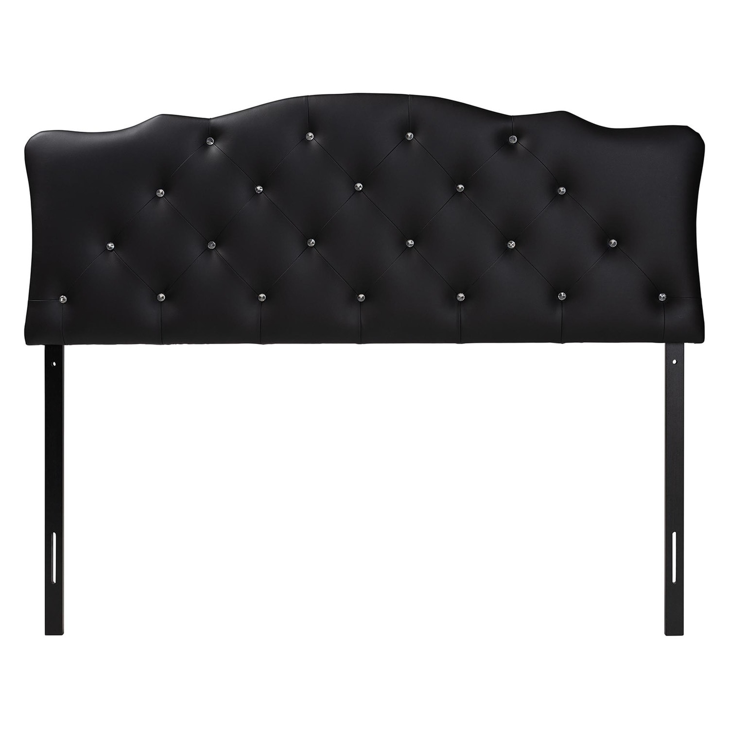 Scalloped Upholstered Button-Tufted Headboard with Faux Crystal Buttons, Adjustable Height and Hardwood Frame
