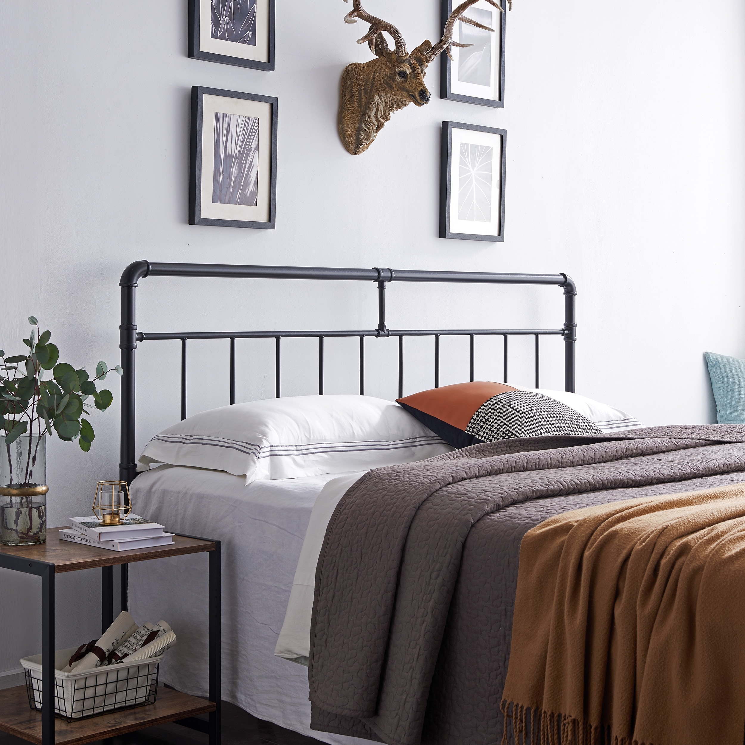 Roomfitters King Size Metal Headboard, Industrial Pipe Style Bed Headboard with Open Frame Design, Black